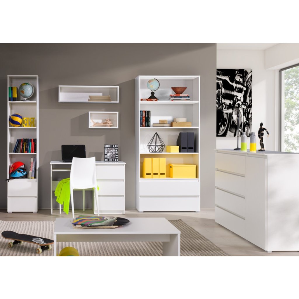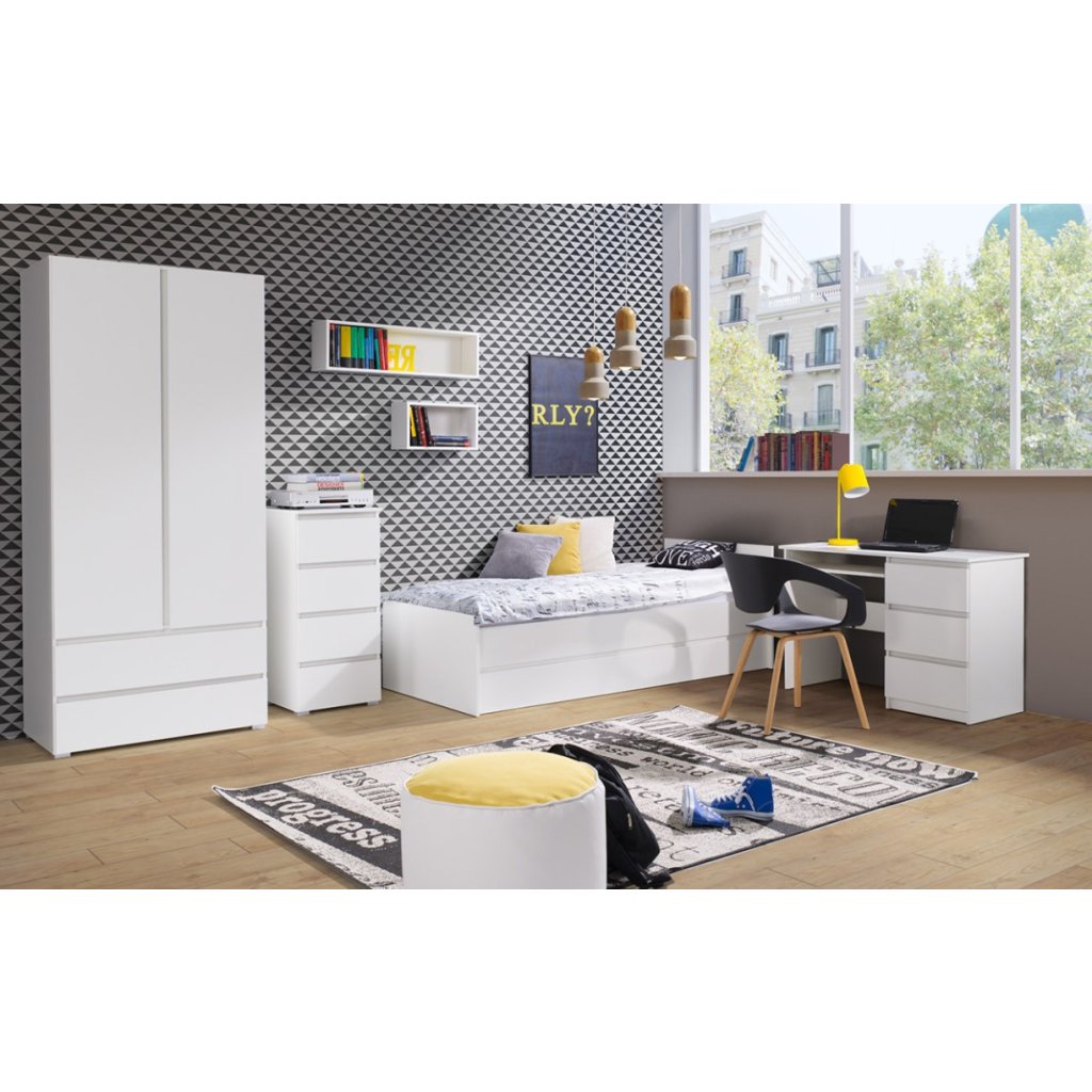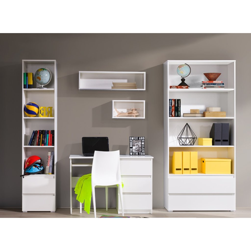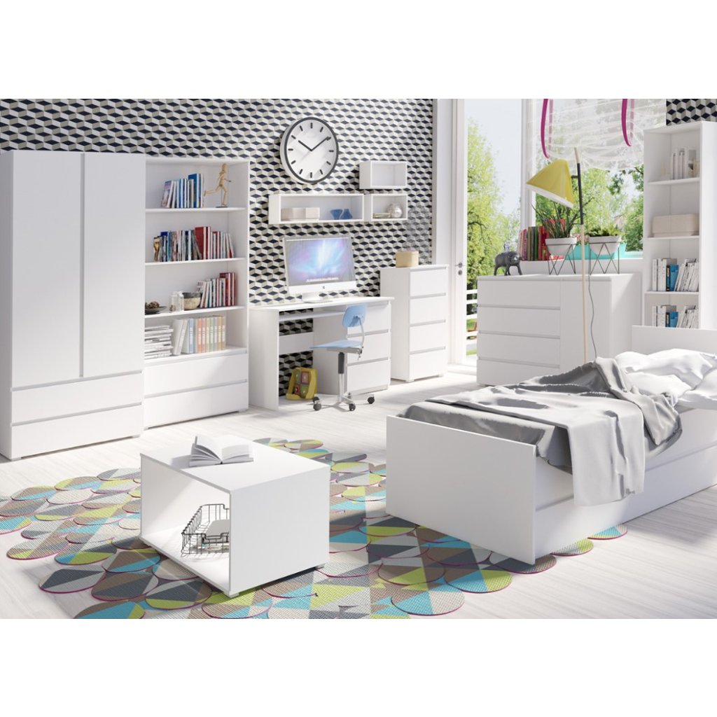 A COSMO C02 gardrób az modern és elegáns, alkalmas gyerek- vagy diákszobába. Szép fehér színű kivitelben, a bútorok vonzó megjelenésével . A fogantyú nélküli rendszer nagyon praktikus és biztonságos, ugyanakkor bájos kialakítású. A Cosmo C02 szekrény alján 2 fiók található az apróságok tárolására. A szekrény két részre van osztva, a bal oldalon egy polc és egy akasztórúd, a jobb oldalon csak polcok találhatók.