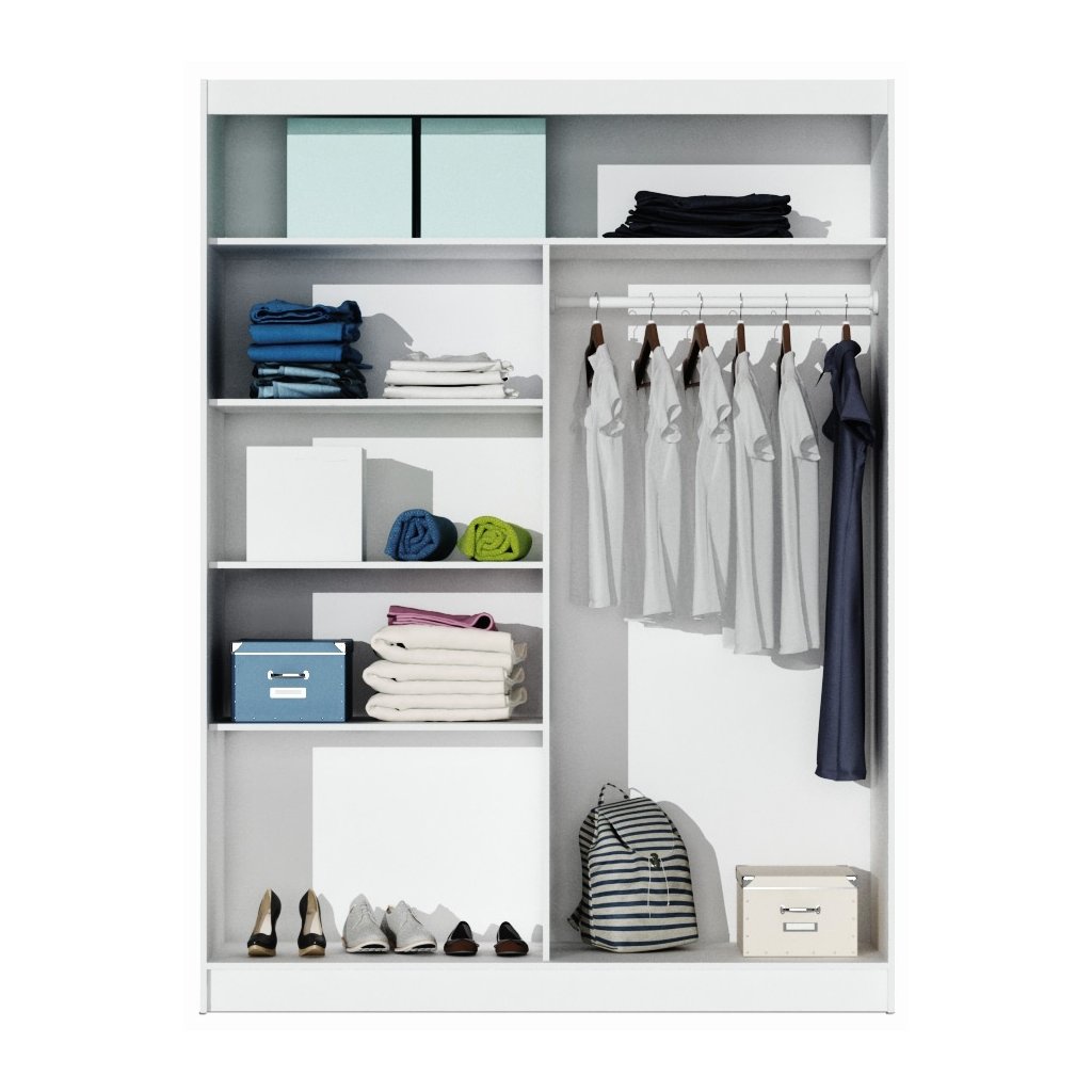 Az elegáns DAKOTA 160 gardrób rengeteg tárolóhelyet kínál ruháinak vagy személyes tárgyainak, amelyeket mindig a helyén szeretne tartani. Ennek az egyedi gardróbnak a jellegzetessége a külső megjelenés, mely tökéletes végső hatást kelt. A szekrény fekete színben készült. DAKOTA 160 gardróbszekrény tükörrel, ruhaakasztó rúddal és polcokkal.