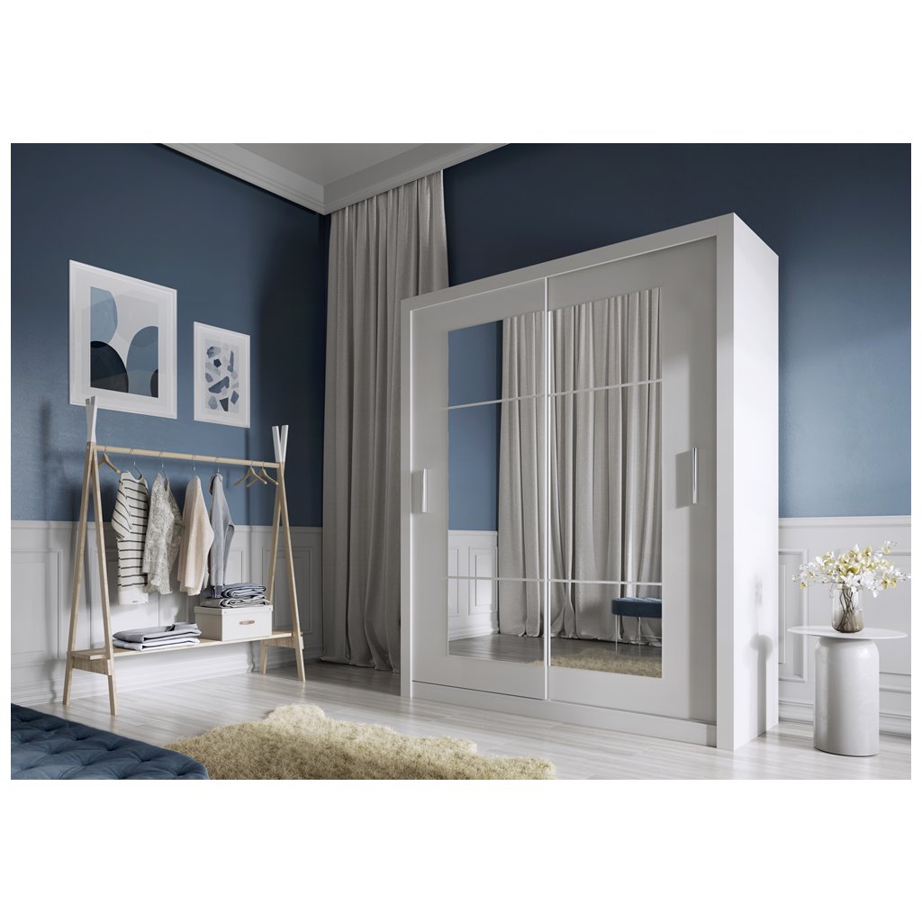 A DELILA szektorbútor egy finom és elegáns hálószobabútor , amely több színváltozatban kapható. A keretezésnek köszönhetően a bútor masszívnak tűnik, a fogantyúk fémből készültek, modern megjelenést kölcsönözve a bútornak. Kellemesen és kényelmesen fogja érezni magát a hálószobában, zavartalan alvást élvezhet. A szekrényekben és komódokban rengeteg tárolóhely található, így többé nem lesz problémája a ruhák tárolásával. Ha tökéletes hálószobát szeretne, állítsa össze DELILA szektorbútorból. A DELILA ID-02 szekrény tolóajtós, középső részében tükör található. A szekrény belseje polcokból és ruhaakasztó rúdból áll. A szekrényhez rendelhető az ID-13 belső fiókos szekrény , amely kiválóan alkalmas fehérnemű tárolására.