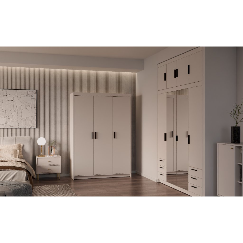 A 3D / homokbézs ruhásszekrény kiváló minőségű , 15 mm-es laminált anyagból készült, amely tartósságot, hosszú élettartamot és az Ön elégedettségét garantálja. A praktikus belsőépítészet, az időtlen bézs szettak, a tökéletes dizájn és a modern megjelenés a bútorok jellemző jellemzői. Gyönyörű fekete műanyag fogantyúk teszik teljessé a ruhásszekrényt. Tehát ne habozzon tovább, és tegye tökéletessé hálószobáját az ELLEN 3D / homokbézs ruhásszekrény formájában. Ha érdekli, az ELLEN 3D / homokbézs ruhásszekrényhez bővítményt is rendelhet. Több tárolóhelyért az ELLEN konténer is kapható .