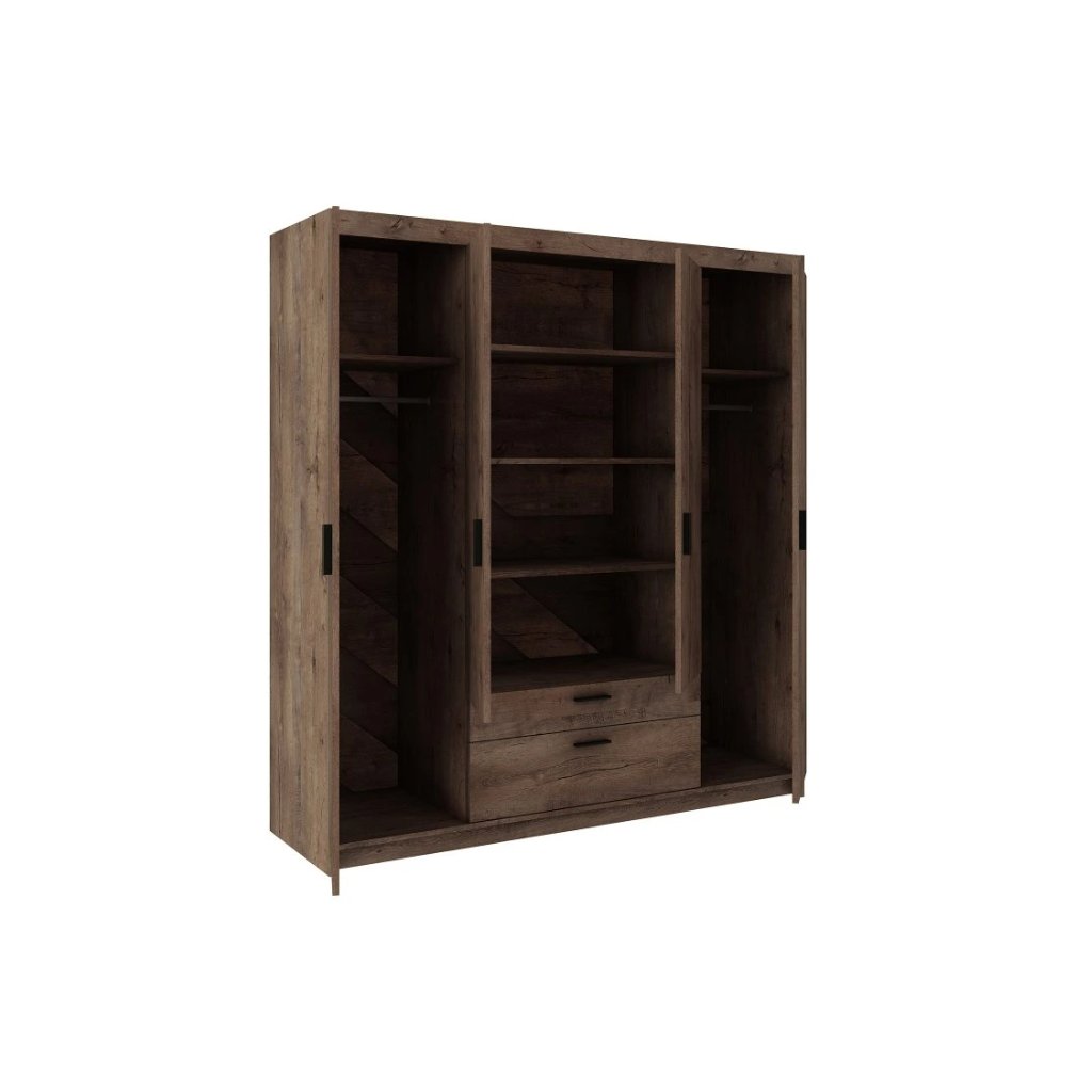 A 4D2S kombinált szekrény kiváló minőségű, 15 mm-es laminált anyagból készült, amely tartósságot, hosszú élettartamot és az Ön elégedettségét garantálja. A praktikus kialakítás, az időtlen barna felület, a tökéletes dizájn és a modern megjelenés a bútorok jellemző jellemzői. Gyönyörű fekete műanyag fogantyúk teszik teljessé a szekrényt. Tehát ne habozzon tovább, és tegye tökéletessé hálószobáját az ELLEN 4D2S szekrény formájában. Ha érdekli, az ELLEN 4D szekrényhez bővítményt is rendelhet. Több tárolóhelyért az ELLEN konténer is kapható.