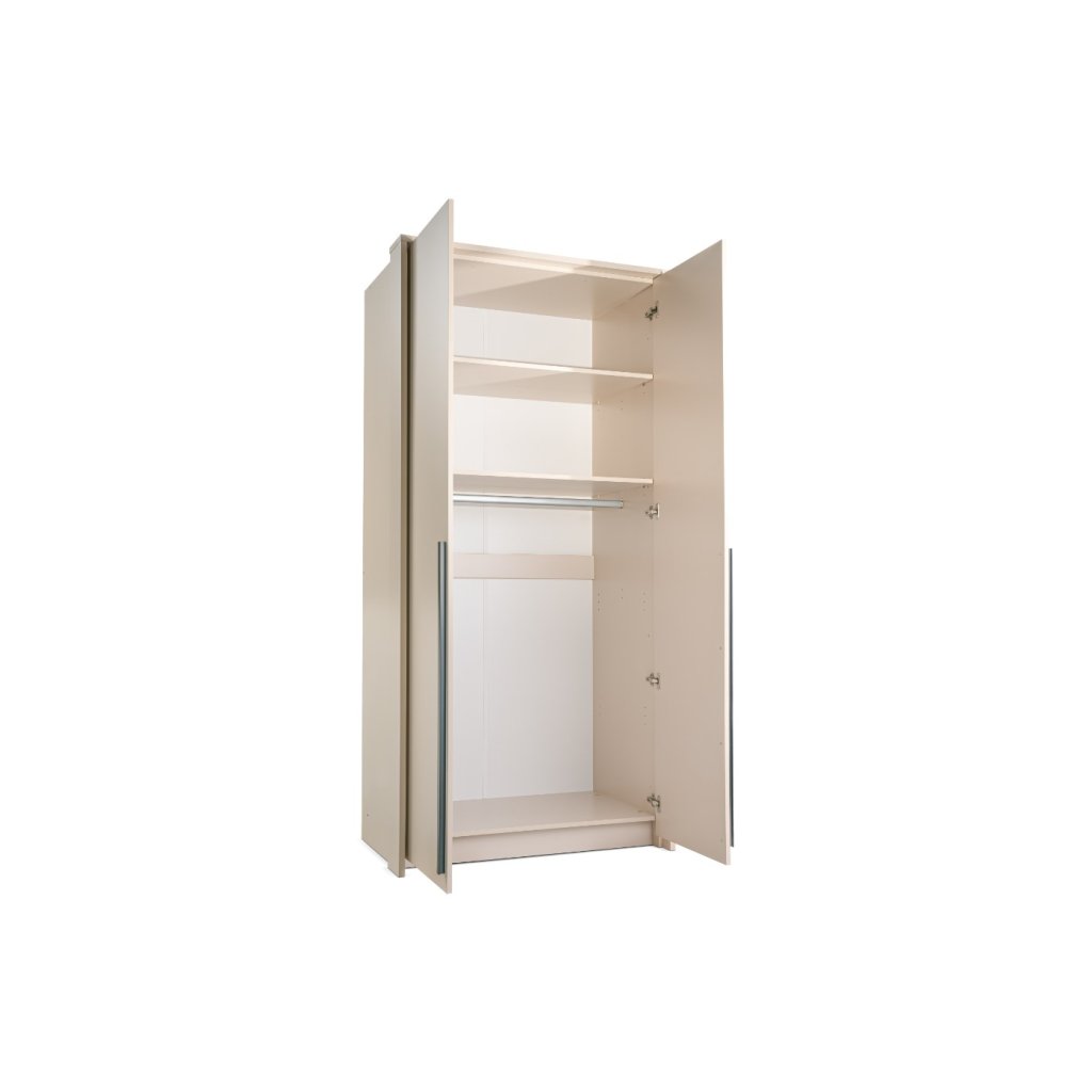 A GENUA bézs szekrény a funkcionalitás és az elegancia kvintesszenciája. A szimmetrikus dizájnnal és a bézs és a fekete árnyalatok kombinációjával ez a 2 ajtós modell egyedi karaktert kölcsönöz hálószobájának. Tágas belső teret kínál, hosszú fém fogantyúkkal, akasztórúddal és két polccal, ami nem csak tágassá, de vonzóvá is teszi. A hosszú fém fogantyúk nem csak a használatot könnyítik meg, hanem jellegzetes díszítő elemet és egyedi varázst adnak a gardróbnak.