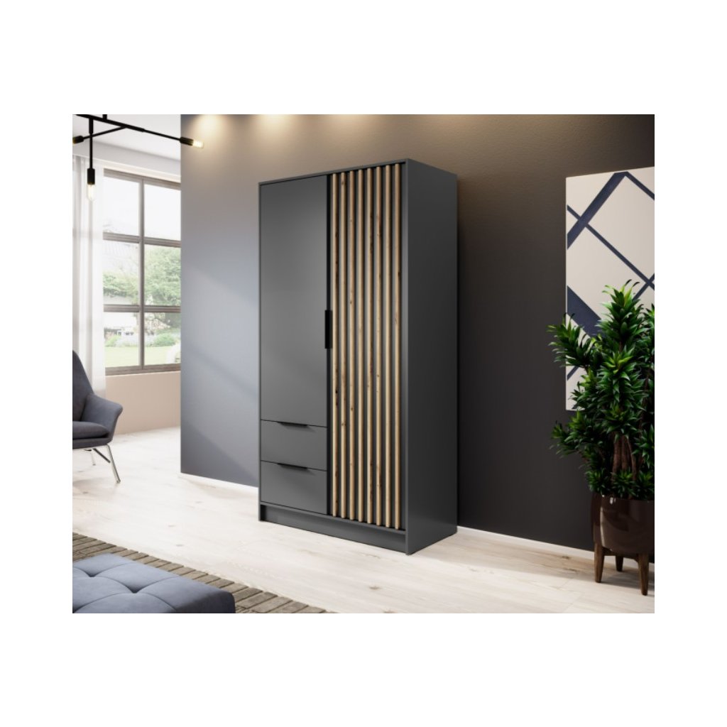 A léces gardróbszekrények egyre népszerűbbek a modern háztartásokban. Egyedi kialakításuk, amely ötvözi az esztétikát és a praktikumot, stílust és funkcionalitást visz a belső térbe. A modern és praktikus KELLY gardróbszekrények tökéletesen megtervezettek, mind a praktikum, mind a megjelenés szempontjából. Az érdekes színkombinációknak köszönhetően zökkenőmentesen illeszkednek bármilyen modern enteriőrbe. A KELLY 2D gardróbszekrény két ajtóval és két fiókkal rendelkezik, az ABS éleket pedig a mindennapi használat során értékelni fogja. A léces gardróbszekrények elegáns megjelenést kölcsönöznek, ugyanakkor rengeteg helyet biztosítanak a holmijainak.