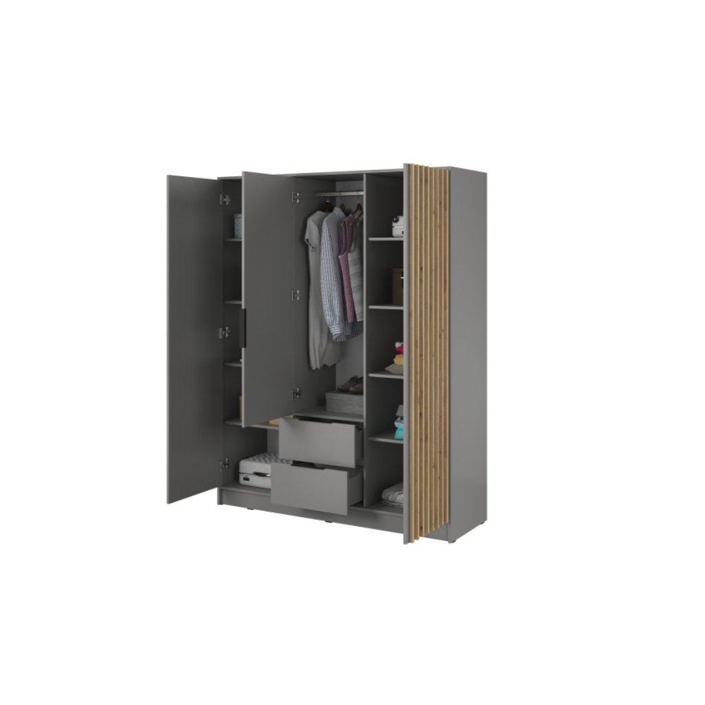 A lécek abszolút sikert arattak a belsőépítészetben. A modern és praktikus KELLY gardróbszekrények tökéletesen kifinomultak, mind praktikusság, mind megjelenés szempontjából. Az érdekes színkombinációknak köszönhetően bármilyen modern enteriőrbe illeszkednek . A KELLY 3D gardróbszekrény három ajtóval és két fiókkal rendelkezik, az ABS éleket pedig a mindennapi használat során értékelni fogod.
