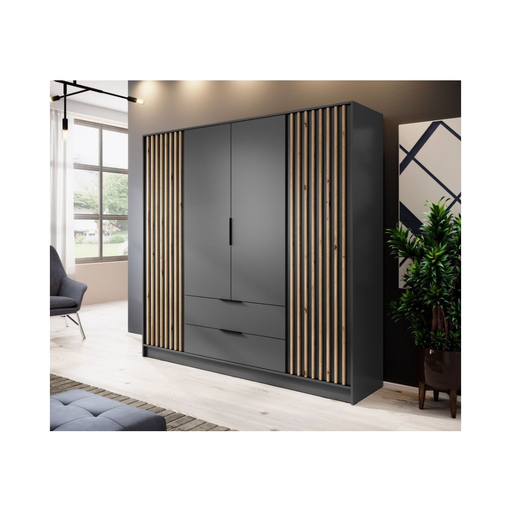 Problémája van a rendetlenséggel a gardróbjában? A KELLY 4D gardrób a megoldás, amit keres! Érdekes színkombinációinak köszönhetően könnyedén illeszkedik bármilyen modern enteriőrbe. A tágas KELLY 4D gardrób négy ajtóval és két nagy fiókkal rendelkezik, az ABS éleket pedig a mindennapi használat során értékelni fogja. A gardrób nemcsak praktikus, hanem esztétikus kiegészítője is otthonának. Fektessen be egy minőségi gardróbba , és élvezze a rendet minden nap.