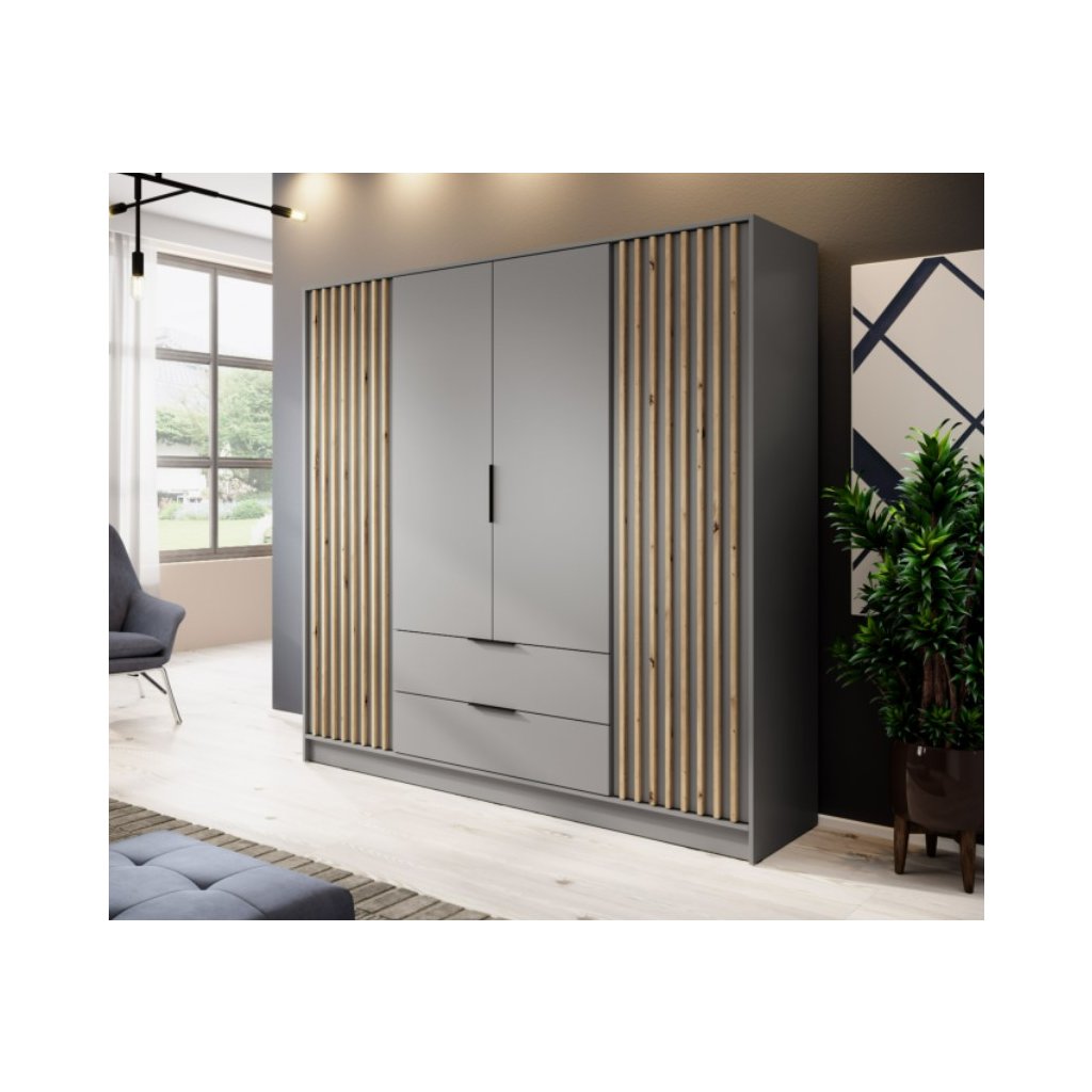 A modern és praktikus KELLY gardróbszekrények tökéletesen megtervezettek, mind praktikusság, mind megjelenés szempontjából. Az érdekes színkombinációknak köszönhetően bármilyen modern enteriőrbe illeszkednek . A tágas KELLY 4D gardróbszekrény négy ajtóval és két nagy fiókkal rendelkezik, az ABS éleket pedig a mindennapi használat során értékelni fogja. A gardróbszekrény nemcsak praktikus, hanem esztétikus kiegészítője is otthonának. A gardróbszekrény a rendezett gardrób kulcsa. Fektessen be egy minőségi gardróbba tőlünk, és élvezze a rendet és az áttekintést gardróbjában minden nap.