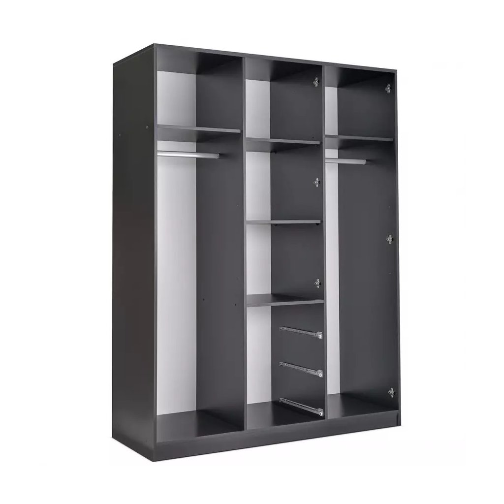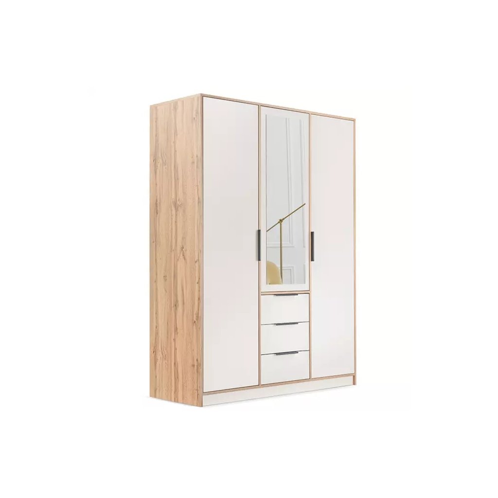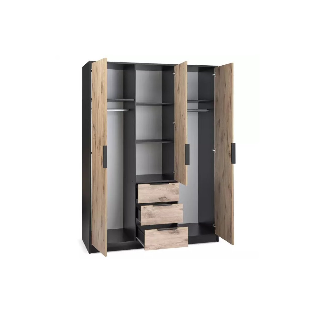 A világos színű LATI 3D gardróbszekrény kiváló minőségű és tartós anyagból készült, amely hosszú élettartamot és az Ön elégedettségét garantálja. A gardróbszekrény kiváló minőségű tárolóhelyet, időtlen színdizájnt és vonzó szettakat kínál. A gyönyörű fekete fém fogantyúk összhatást kölcsönöznek a gardróbszekrénynek. Tehát ne habozzon tovább, és tegye tökéletessé hálószobáját a LATI 3D gardróbszekrény formájában. Ha érdekli, a LATI D3 gardróbszekrényhez bővítményt is rendelhet.