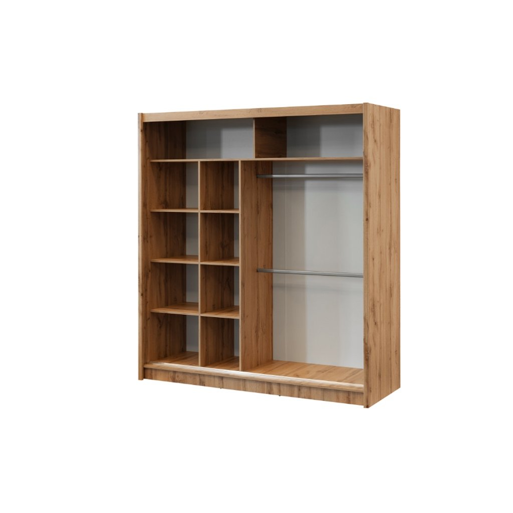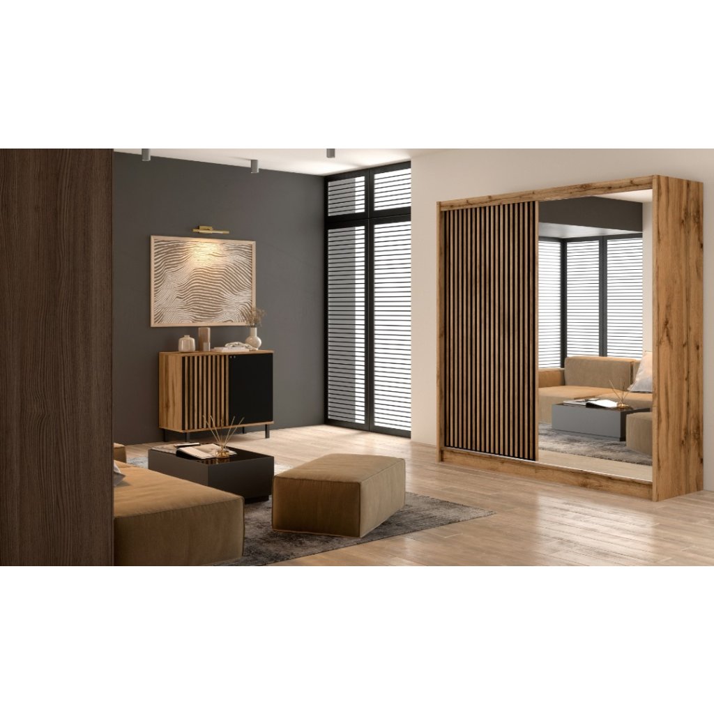 A LONDON 203 gardrób tágas és alkalmas hálószoba vagy előszoba berendezésére. A LONDON 203 gardrób egyedi a gyönyörű, modern dizájnjával. Szekrény egyedi wotan tölgy színben, fekete kombinációval. A gardrób ára egy ajtó teljes hosszában egy tükröt tartalmaz. Merítsen ihletet ajánlatunkból, és válasszon egyedi gardróbot.
