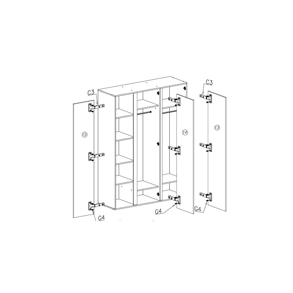 Gyönyörű magas szekrény LUCA LC01 kellemes eukaliptusz színben, balti tölgy kombinációjával. A háromajtós, polcokkal és magas fekete lábakon álló akasztórúddal ellátott szekrény remek választás gyerek- vagy diákszobába. A design árnyalatok kombinációja kellemes és harmonikus légkört hoz a gyerekszobába. Egy nagy gardrób remek megoldást jelent a gyerek- vagy diákszoba rendbetételére.