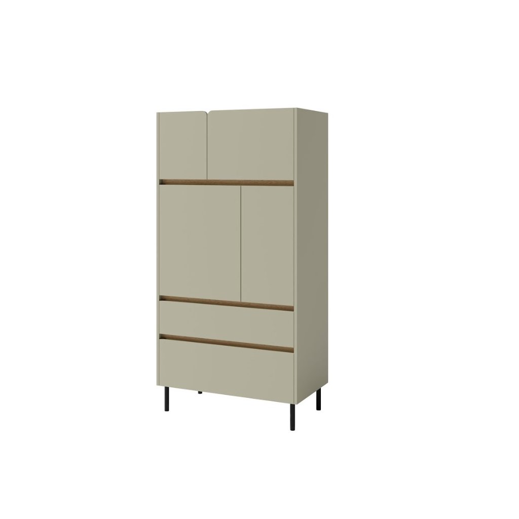 Gyönyörű LUCA LC05 gardróbszekrény kellemes eukaliptusz színben, balti tölgy kombinációjával. A négylyukú, két fiókos, magas fekete lábakon álló szekrény remek választás gyerek- vagy diákszobába. A design árnyalatok kombinációja kellemes és harmonikus hangulatot hoz a gyerekszobába.