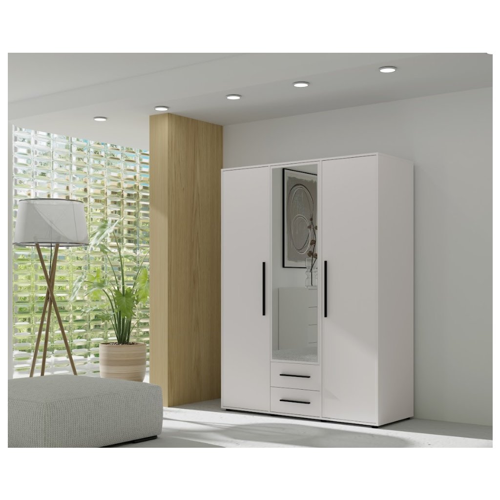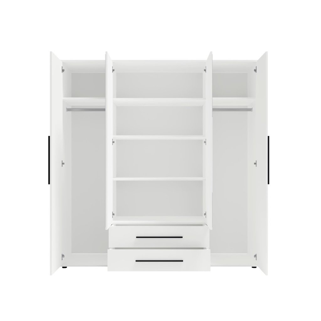 Teremtsen elegáns és modern otthont lenyűgöző fehér MAXIONE bútorokkal. A MAXIONE SZ4D2SZ fehér színű gardrób tágas, polcokkal, fiókokkal és ruhaakasztó rúddal. A gardróbot fekete luxus fogantyúk teszik teljessé. Ne habozzon tovább, és adjon hálószobájának egyediséget a rendkívüli MAXIONE bútorkollekciónak köszönhetően. A gardróbhoz bővítmény rendelhető.