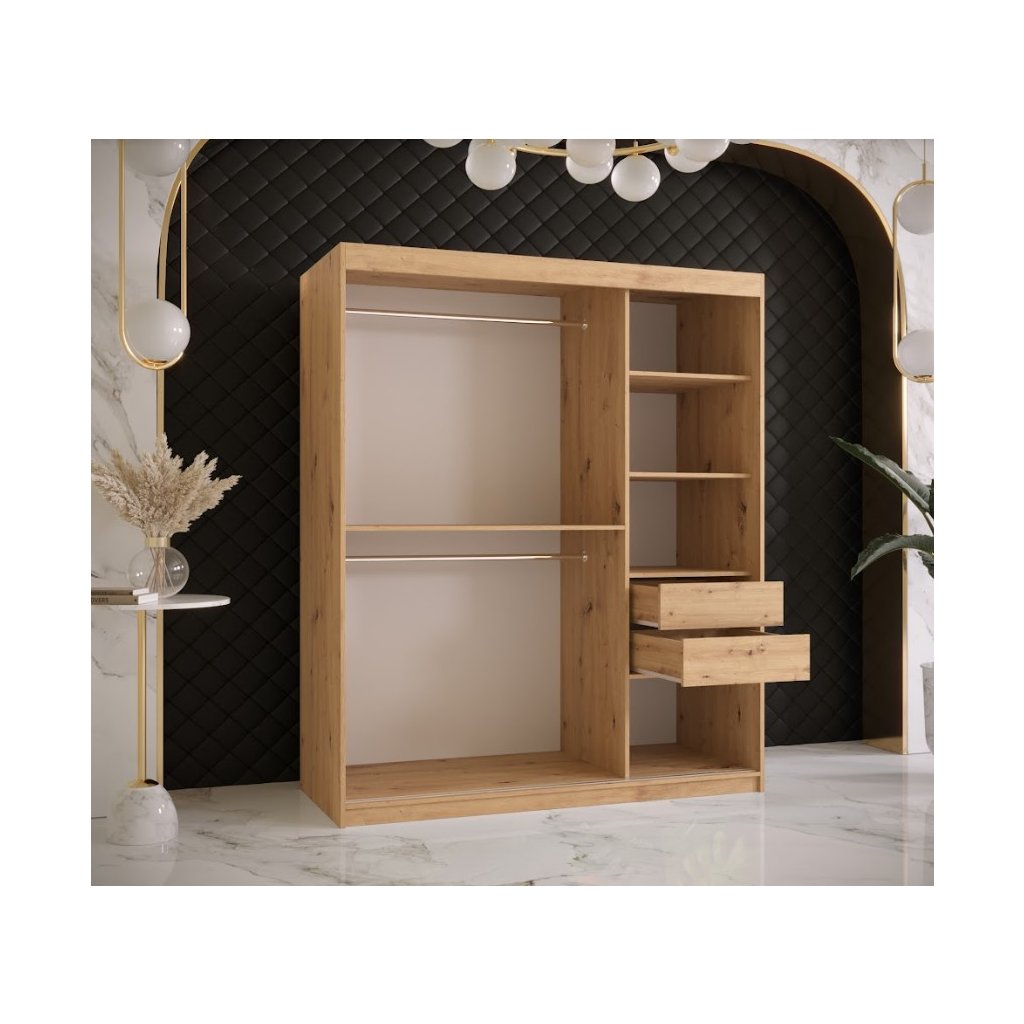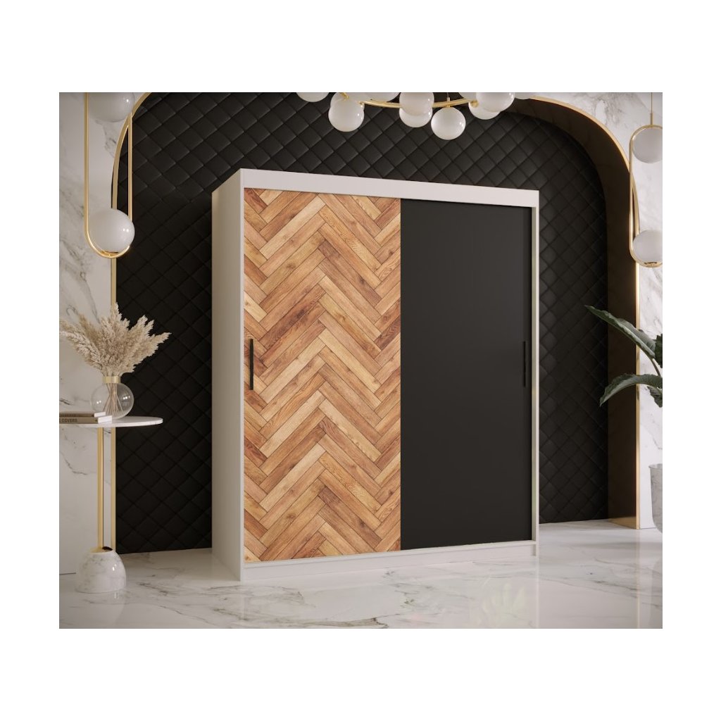 A hálószoba gardróbja minden belső tér szerves része. A akasztórúddal ellátott polcok érdekes kombinációja elegendő tárolóhelyet biztosít, a tolóajtók helyet takarítanak meg a belső térben. A PARKIET 150 gardróbszekrényt többféle színkombinációban kínáljuk, belső fiókok megrendelésének lehetőségével (lásd a változatokat).