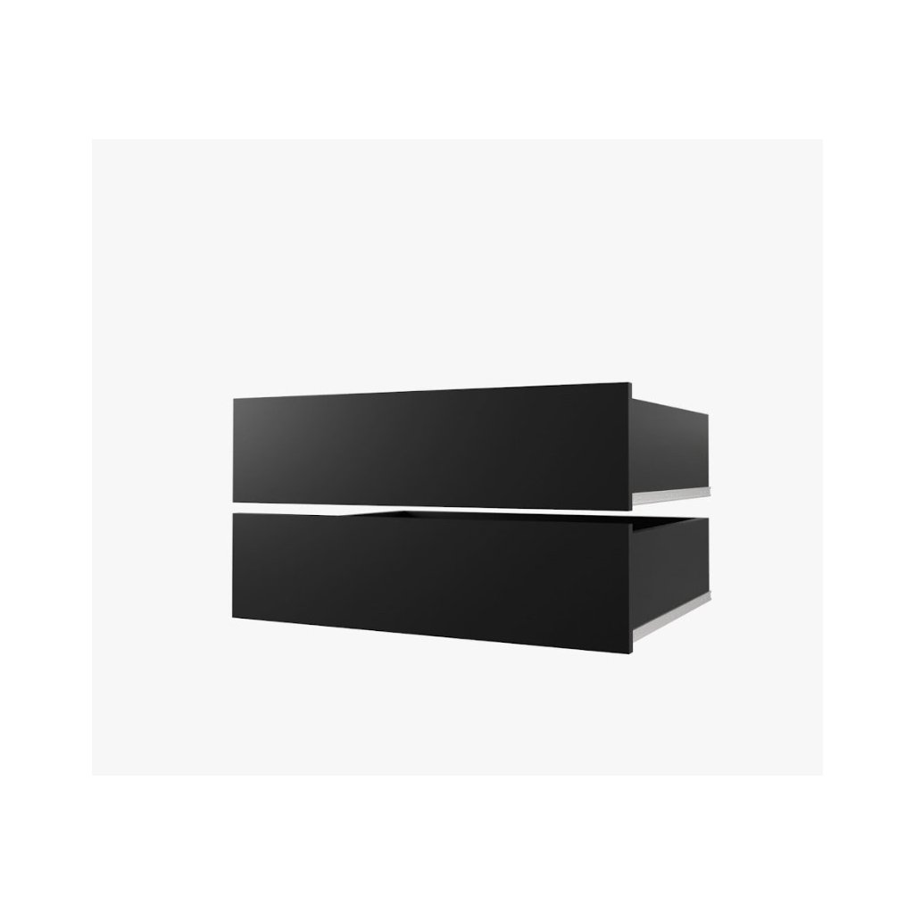 Anyaga: laminált lemez 16 mm, HDF (hátlap), élek 0,5 mm PVC furnér, műanyag fogantyúk
