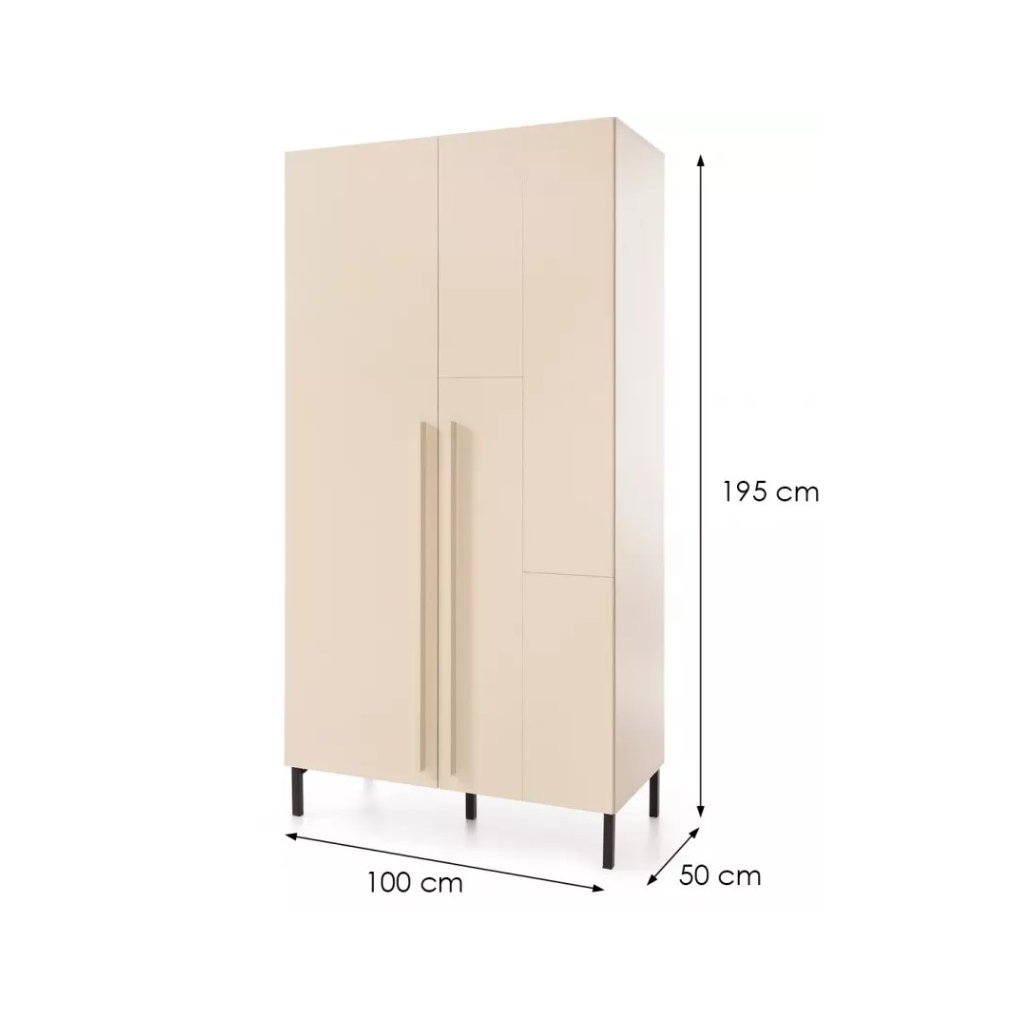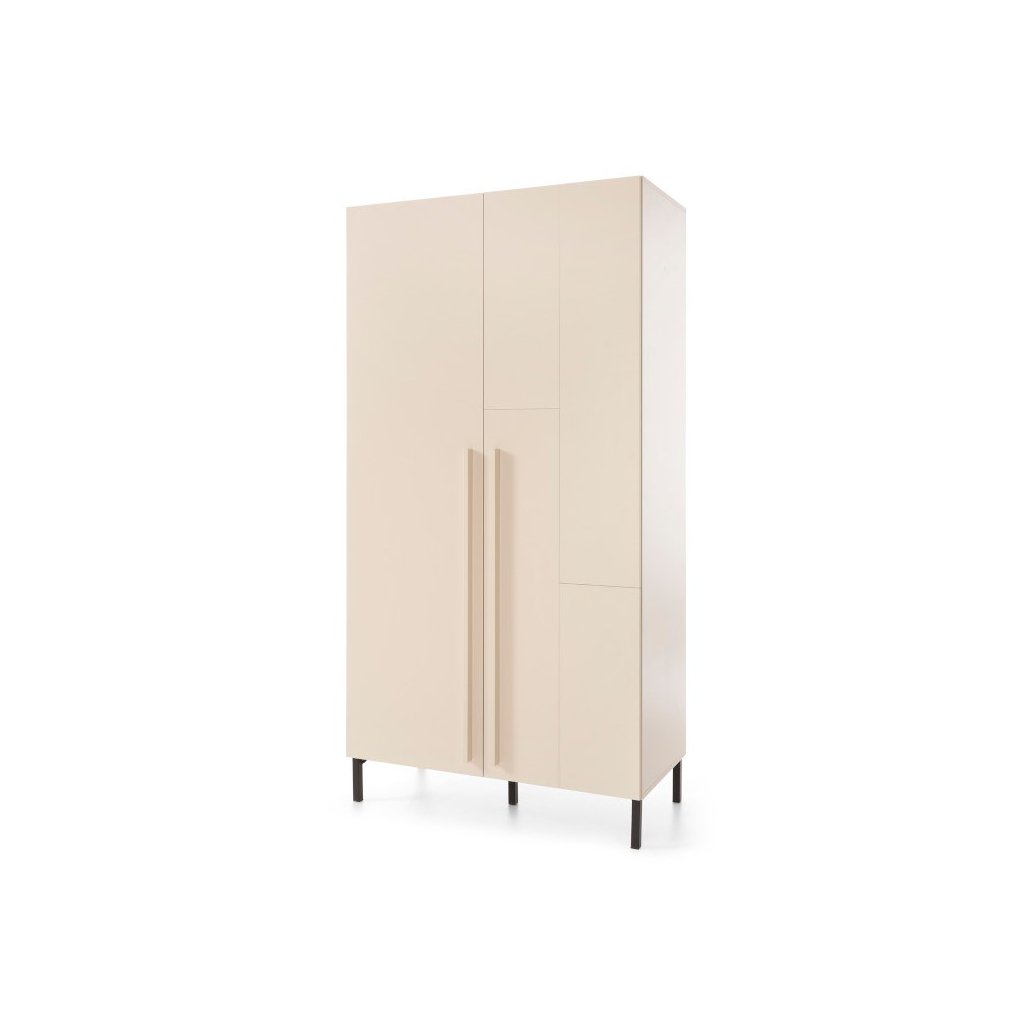 A nagyméretű SERGIO SE2 gardrób egy egyszerű, modern és univerzális kollekciót képvisel, amely minden enteriőrbe illeszkedik. Szekrény stílusos lábakkal és fogantyúkkal matt kivitelben. A bútorok kellemes bézs-homok színkombinációban kaphatók, ami lehetővé teszi, hogy otthona más elemeihez is könnyen illeszkedjen. Ez a bútor praktikus kiegészítő, amely több tárolóhelyet biztosít. A gardrób nagy, tágas, kétajtós, tükör nélkül.