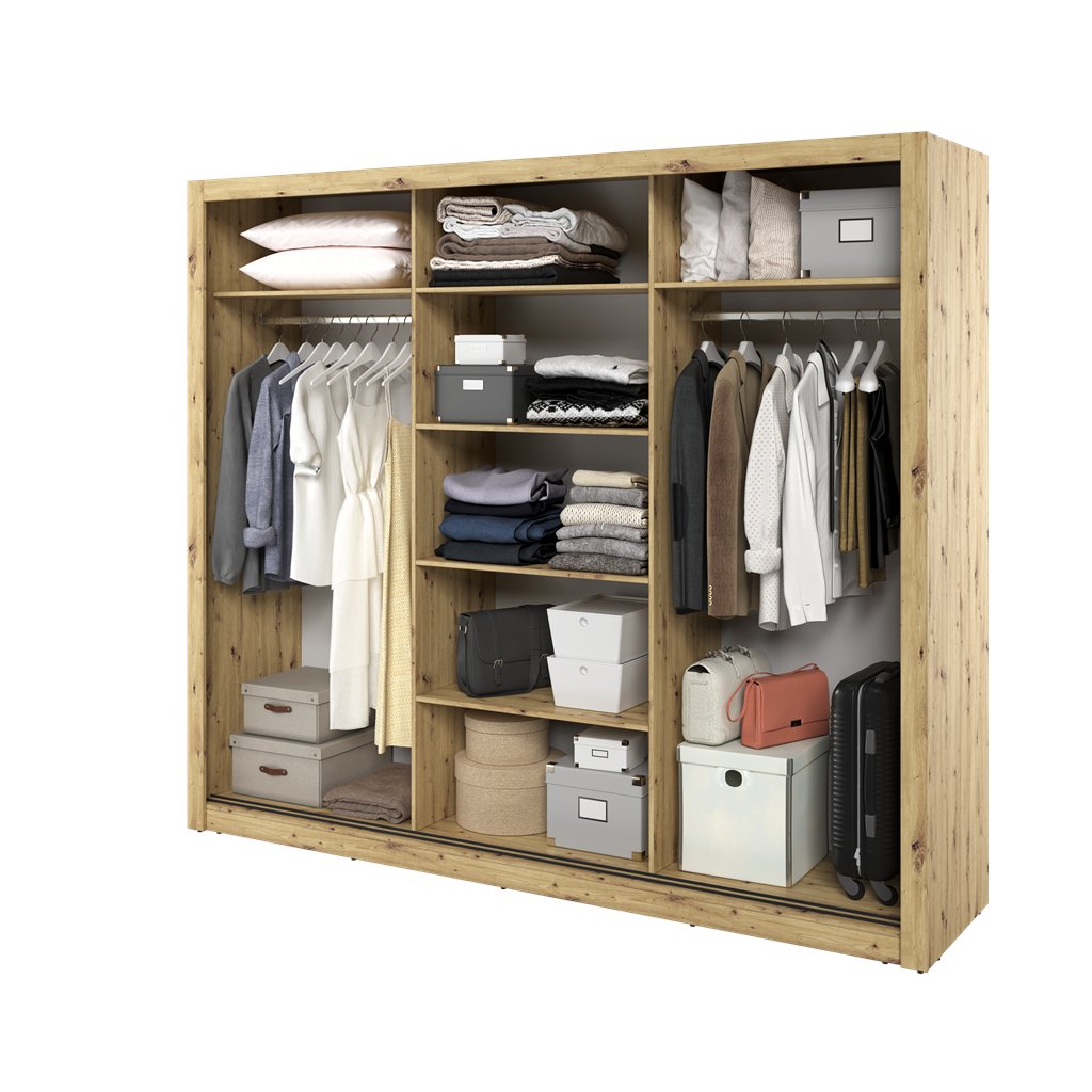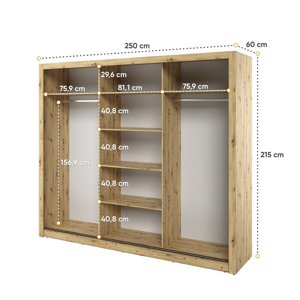 Az elegáns TIAR AR-01 tükrös gardróbszekrény egy tágas, polcokkal és ruhaakasztó rúddal ellátott gardróbszekrény. A TIAR gardróbszekrény kiváló minőségű anyagokból készült. A TIAR gardróbszekrény különböző színválasztékban kapható. Ez a tökéletes TIAR gardróbszekrény otthonod egyedi részévé válik.
