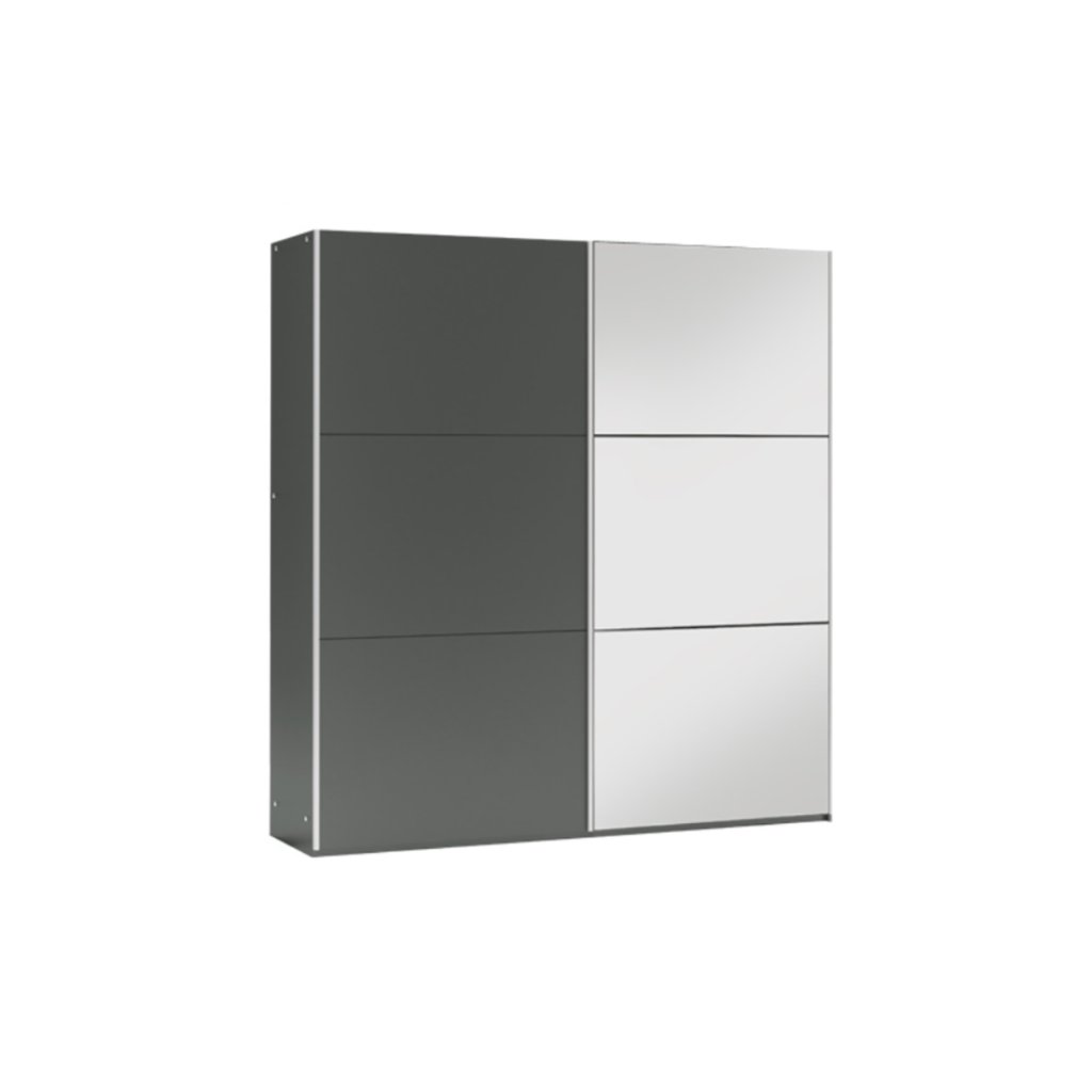 Ötletes gardrób A VIGO 150 bármilyen belső térbe illeszkedik, és nem kell aggódnia a színkombinációk miatt. A szekrény grafit sötét színű. Gardrób ráadásul úgy van kialakítva, hogy a lehető legtöbbet nyújtsa tárhely , amely lehetővé teszi, hogy mindig mindent szépen a helyén tároljon. Jellegzetes eleme egy masszív tükör, amely megvilágítja a teret és egyben optikailag nagyítja a helyiséget.