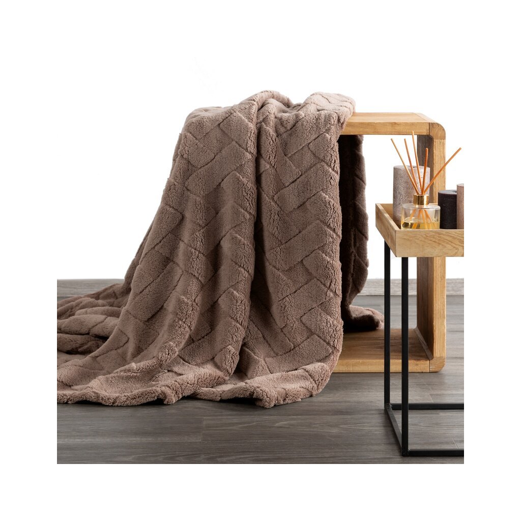 Klasszikus takaró puha tapintású szálból, mikroflanel technológiával. Az egyszínű bolyhos szerkezetet minimalista halszálkás dombormű díszíti. szélesség: 150 cm, hosszúság: 200 cm, szín: sötét bézs, súly: 340 GSM, összetétel: Anyaga: 100% poliészter