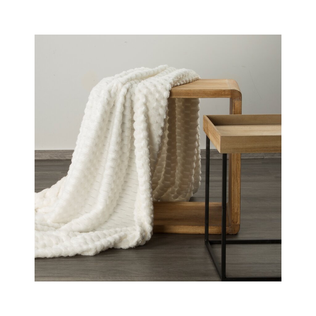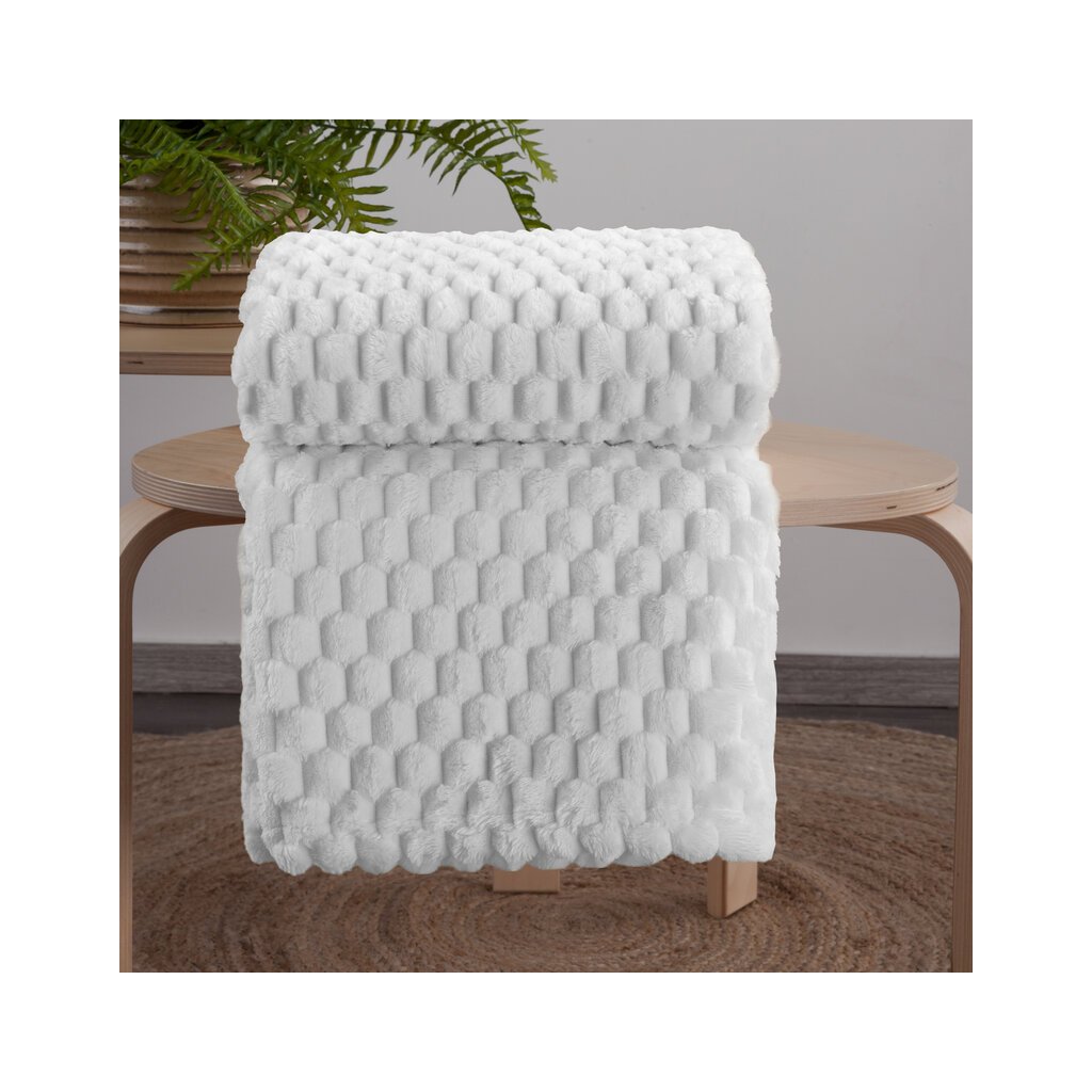 Klasszikus takaró puha tapintású szálból, mikroflanel technológiával. Az egyszínű bolyhos szerkezetet halszálka alakú minimalista dombormű díszíti. szélesség: 70 cm, hosszúság: 160 cm, szín: fehér, súly: 260 GSM GSM, összetétel: Anyaga: 100% poliészter