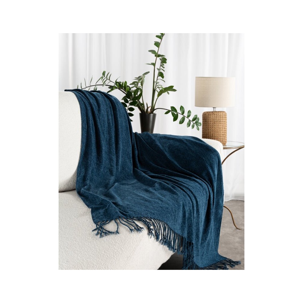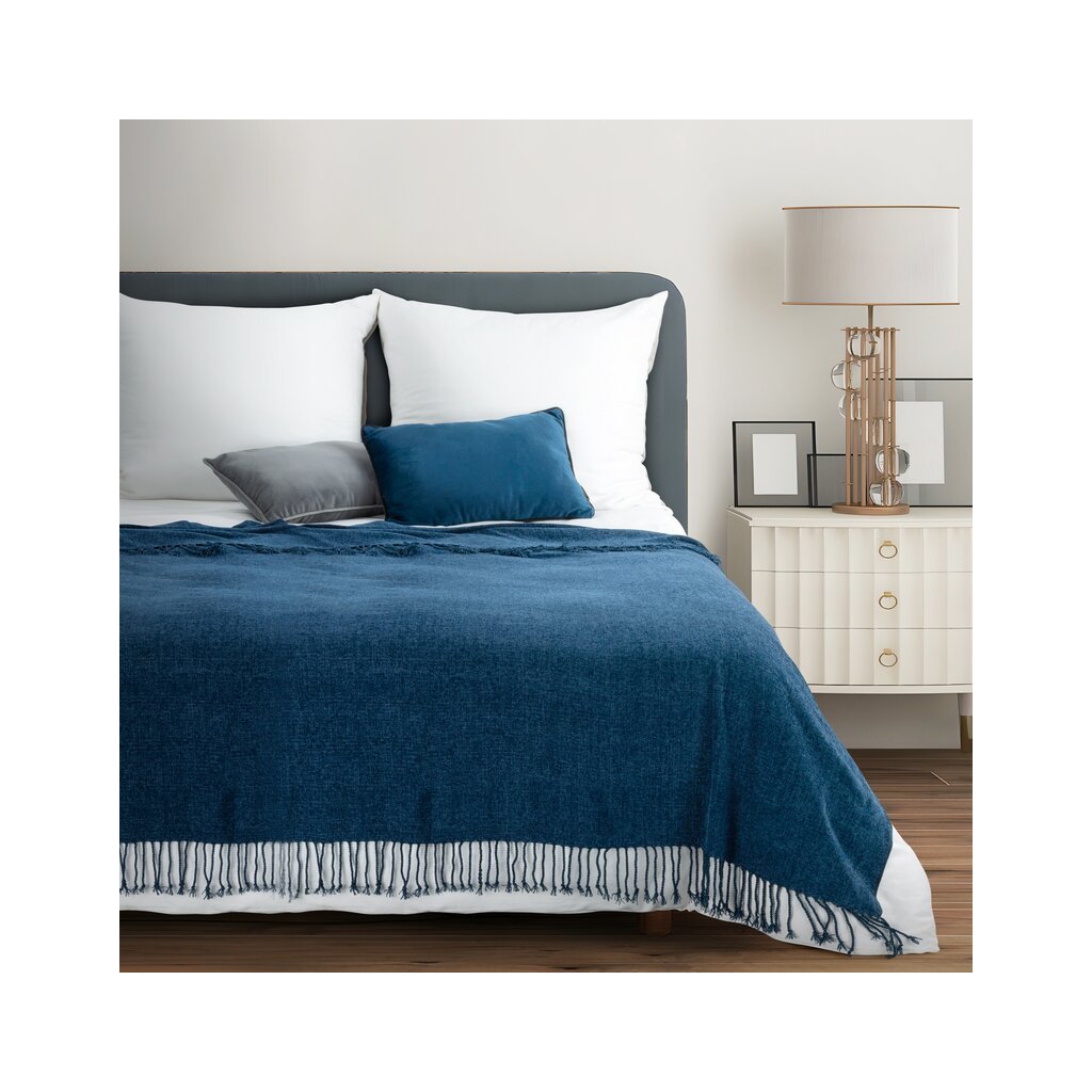 Szövött takaró szegéllyel, szélesség: 130 cm, hossz: 160 cm, szín: sötétkék, súly: 220 GSM, összetétel: Anyaga: 100% poliészter