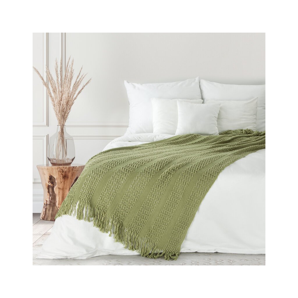 A MILA takaró áttört mintájával első pillantásra lenyűgöz , kötött halszálkás mintát idézve. A takaró puha, bársonyos tapintású, és ágyra vagy kanapéra is használható.