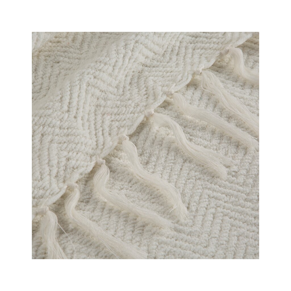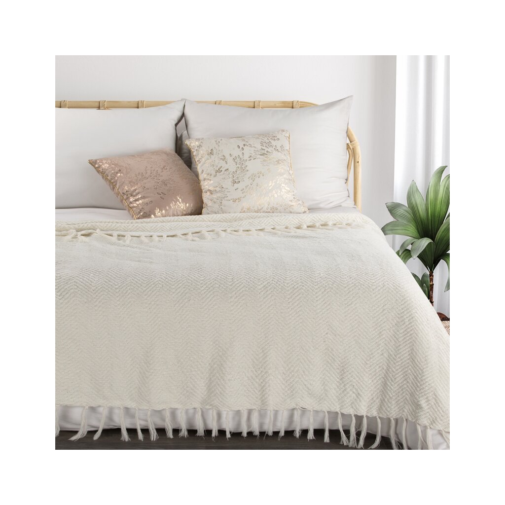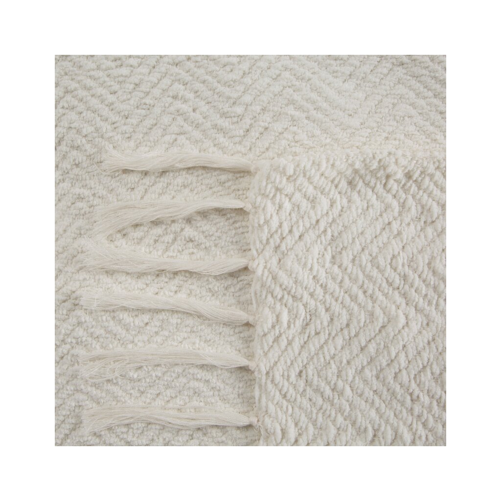 Ez a rojtos , tökéletes fehér színű szőtt takaró minden modern otthonba illik. A takaró nemcsak időtlen dizájnt és rendkívüli megjelenést kölcsönöz, de kellemes tapintású is.