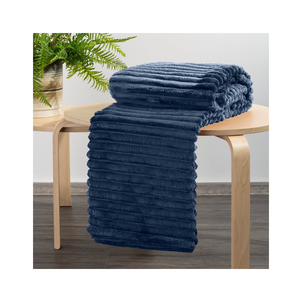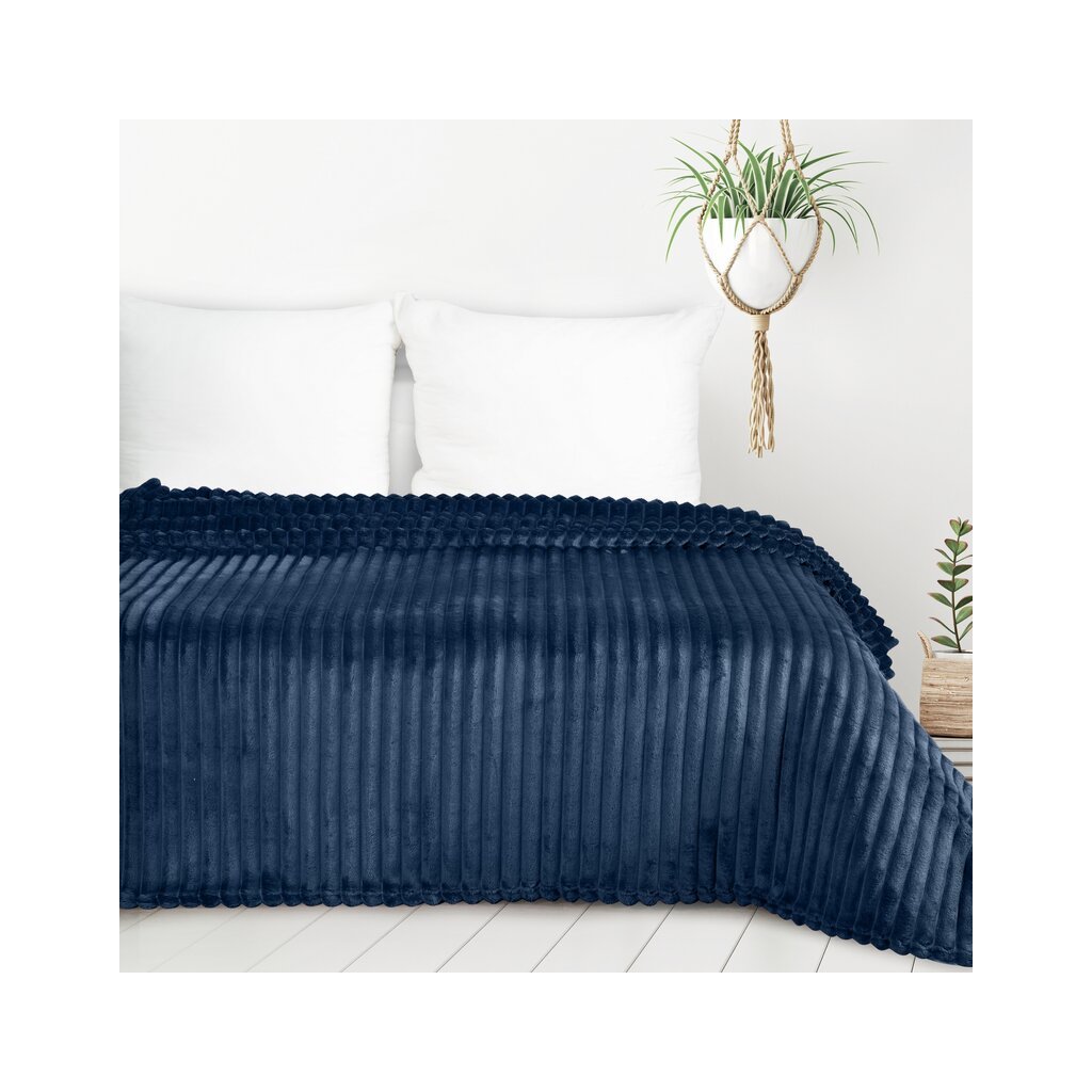 Klasszikus takaró puha tapintású mikroflanel szálból. Az egyszínű bolyhos szerkezetet minimalista halszálkás dombormű díszíti. szélesség: 150 cm, hosszúság: 200 cm, szín: sötétkék, súly: 300 GSM, összetétel: Anyaga: 100% poliészter