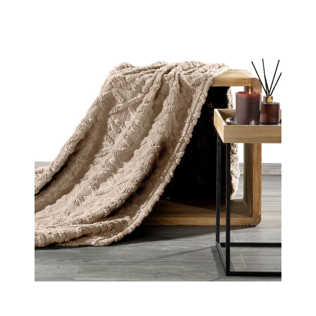 Puha takaró díszfonattal, szélesség: 150 cm, hossza: 200 cm, szín: bézs, súly: 260 GSM, összetétel: Anyaga: 100% poliészter