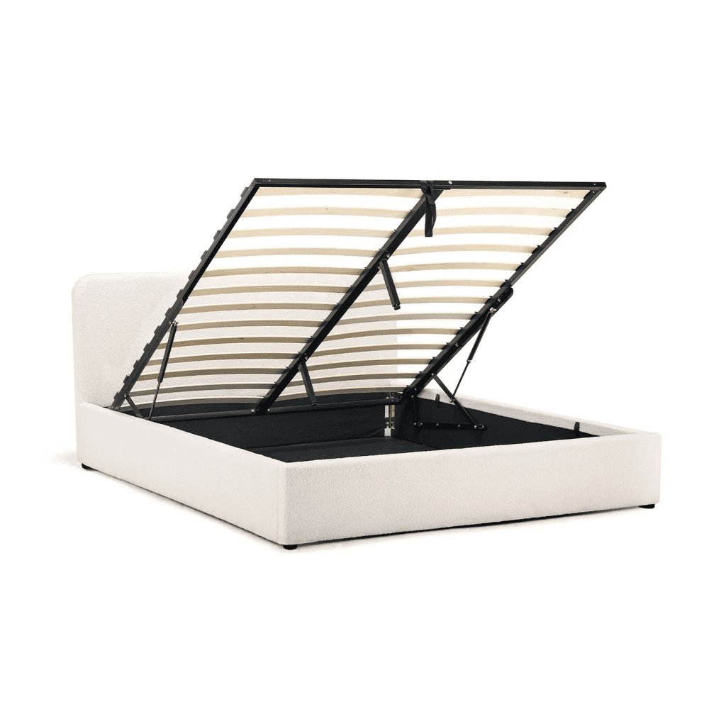 A TEDDY kárpitozott franciaágy luxus fehér dizájnban, finom buklé anyagból készült, a modern dizájn, a kényelem és a praktikus funkcionalitás megtestesítője. A divatos strukturált buklé anyag egyedi "teddy" hatást kölcsönöz az ágynak, amely puha, meleg és rendkívül stílusos. Az ágy minden modern hálószoba domináns elemévé válik. Az ágyhoz egy kiváló minőségű, összecsukható léces keret tartozik , amely könnyű hozzáférést biztosít az ágy teljes felülete alatt található tágas tárolóhelyhez. Ez a hely ideális ágynemű, párnák, takarók vagy szezonális cikkek tárolására, és segít abban, hogy hálószobáját tökéletesen rendben tartsa. A matrac nem része az ágynak , külön rendelhető.