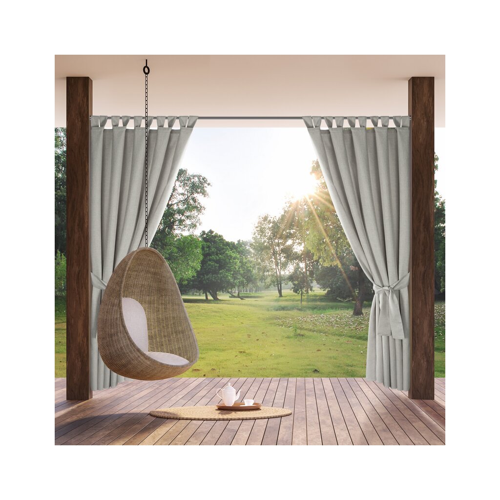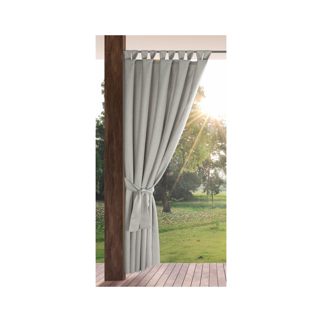 Készre varrt kerti függöny vízálló anyagból, tépőzáras rögzítéssel a hurkokon. Szélesség: 155 cm, hosszúság: 200 cm, szín: ezüst, súly: 180 GSM, anyag: 100% poliészter