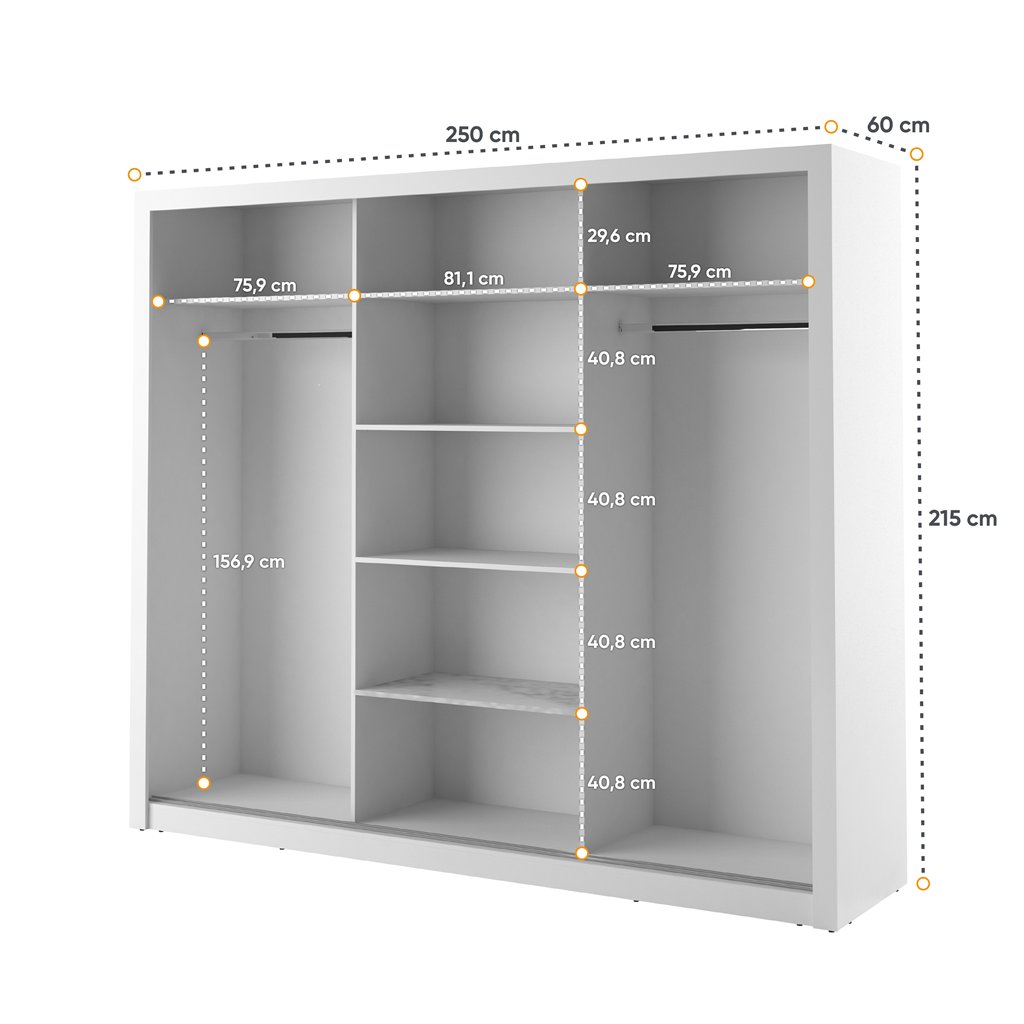 Az elegáns TIAR AR-01 tükrös gardróbszekrény egy tágas, polcokkal és ruhaakasztó rúddal ellátott gardróbszekrény. A TIAR gardróbszekrény kiváló minőségű anyagokból készült. A TIAR gardróbszekrény különböző színválasztékban kapható. Ez a tökéletes TIAR gardróbszekrény otthonod egyedi részévé válik.