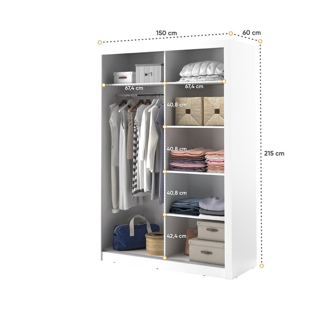 Az elegáns TIAR AR-04 tükrös gardróbszekrény egy tágas, polcokkal és ruhaakasztó rúddal ellátott gardróbszekrény. A TIAR gardrób kiváló minőségű anyagokból készült. A TIAR gardrób fehér, fekete vagy shetlandi tölgy színben kapható. Ez a tökéletes TIAR gardrób otthonod egyedi részévé válik.