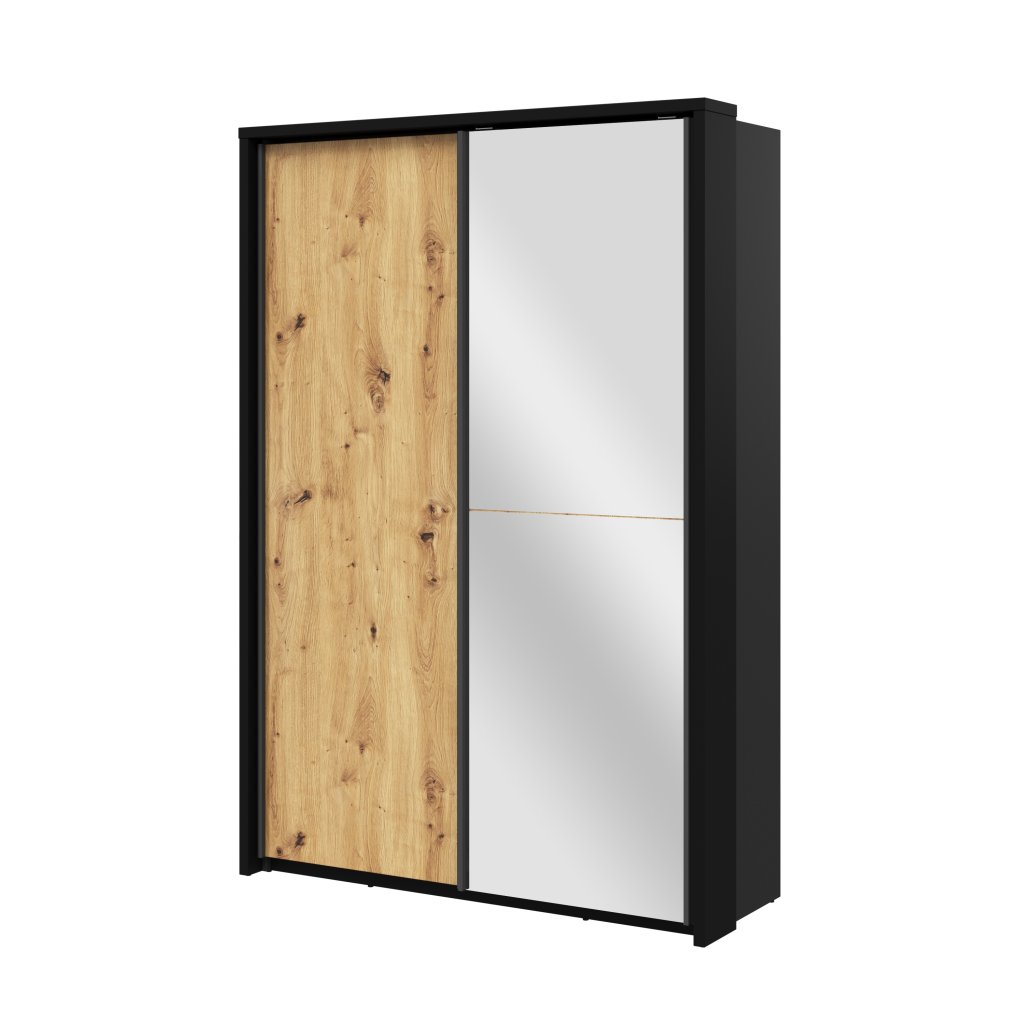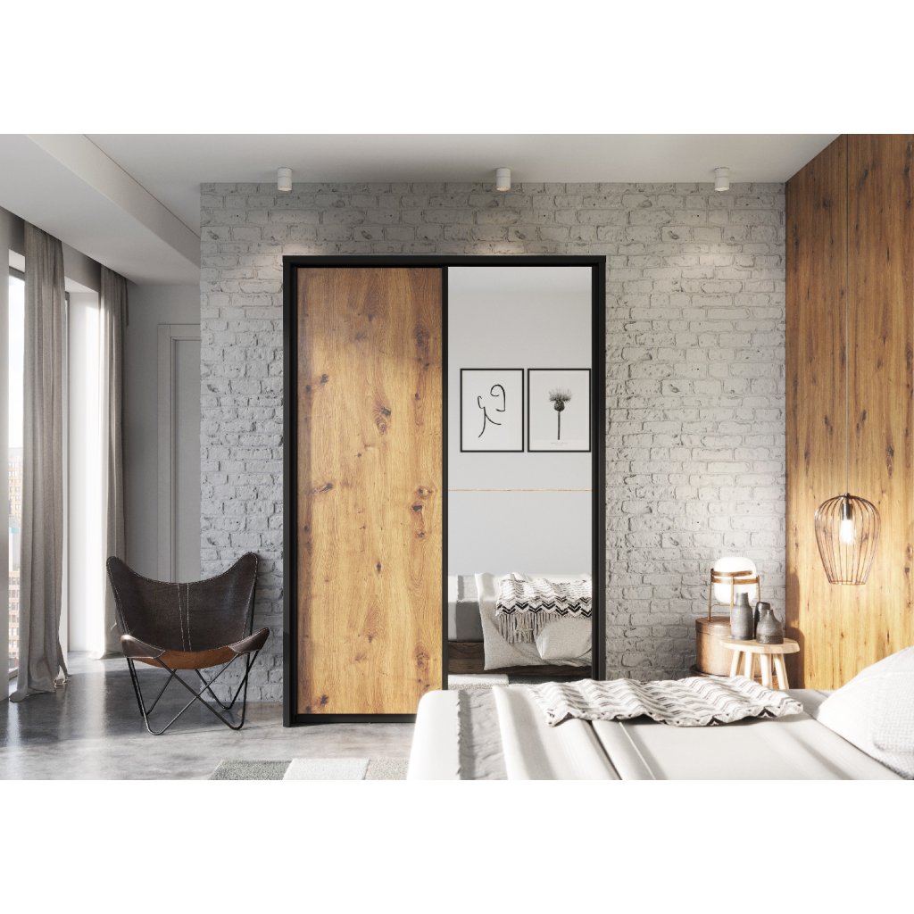 Az elegáns TIAR AR-21 tükrös gardróbszekrény egy tágas gardrób polcokkal és ruhaakasztó rúddal. A TIAR AR-21 gardróbszekrény kiváló minőségű anyagokból készült. A TIAR AR-21 gardróbszekrény kézműves tölgy / fekete színben kapható. Ez a tökéletes TIAR gardrób otthonod egyedi részévé válik.