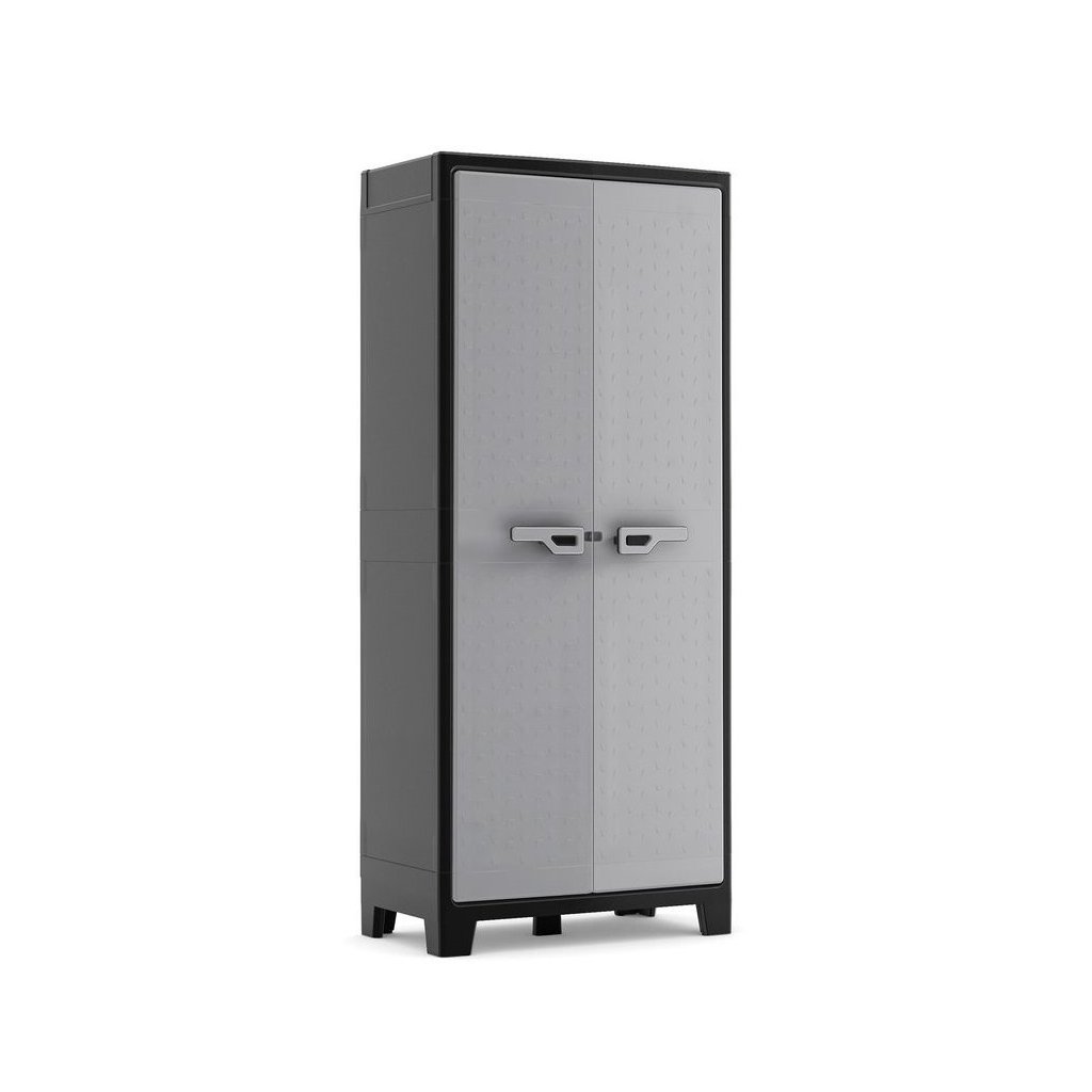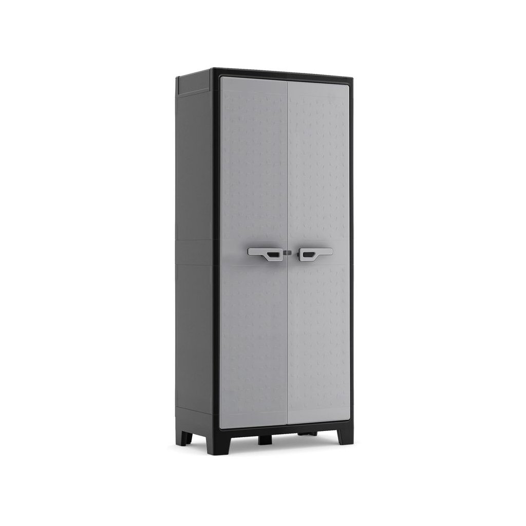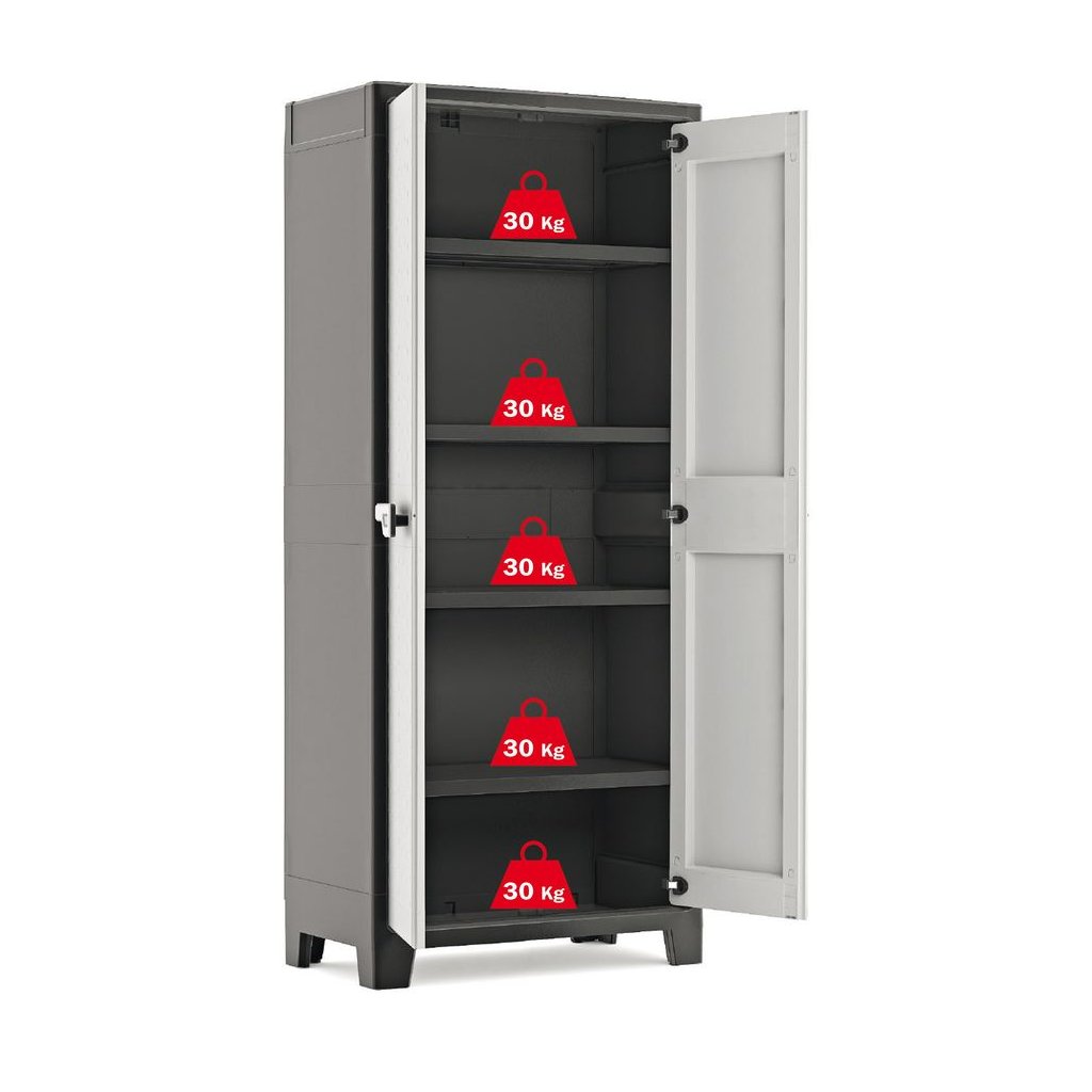 A TILO HIGH szekrény kiváló minőségű műanyagból készült, így nem kell megküzdenie a korróziós problémákkal. A fő előnyök közé tartoznak a kiváló minőségű fém zsanérok , amelyek biztosítják az állandó nyithatóságot és az ajtó szoros illeszkedését . Könnyedén testreszabhatja a polcokat az SLO (Security Lock Off) biztonsági zárnak köszönhetően. A szekrény szilárdan áll az állítható lábakon, így azok magasságát igényei szerint állíthatja be. A még nagyobb stabilitás érdekében a szekrény alja ötödik lábbal van felszerelve . Az UV-védelemnek köszönhetően a szín tartós és megőrzi intenzitását. Lakathoz való fogantyúval van felszerelve.