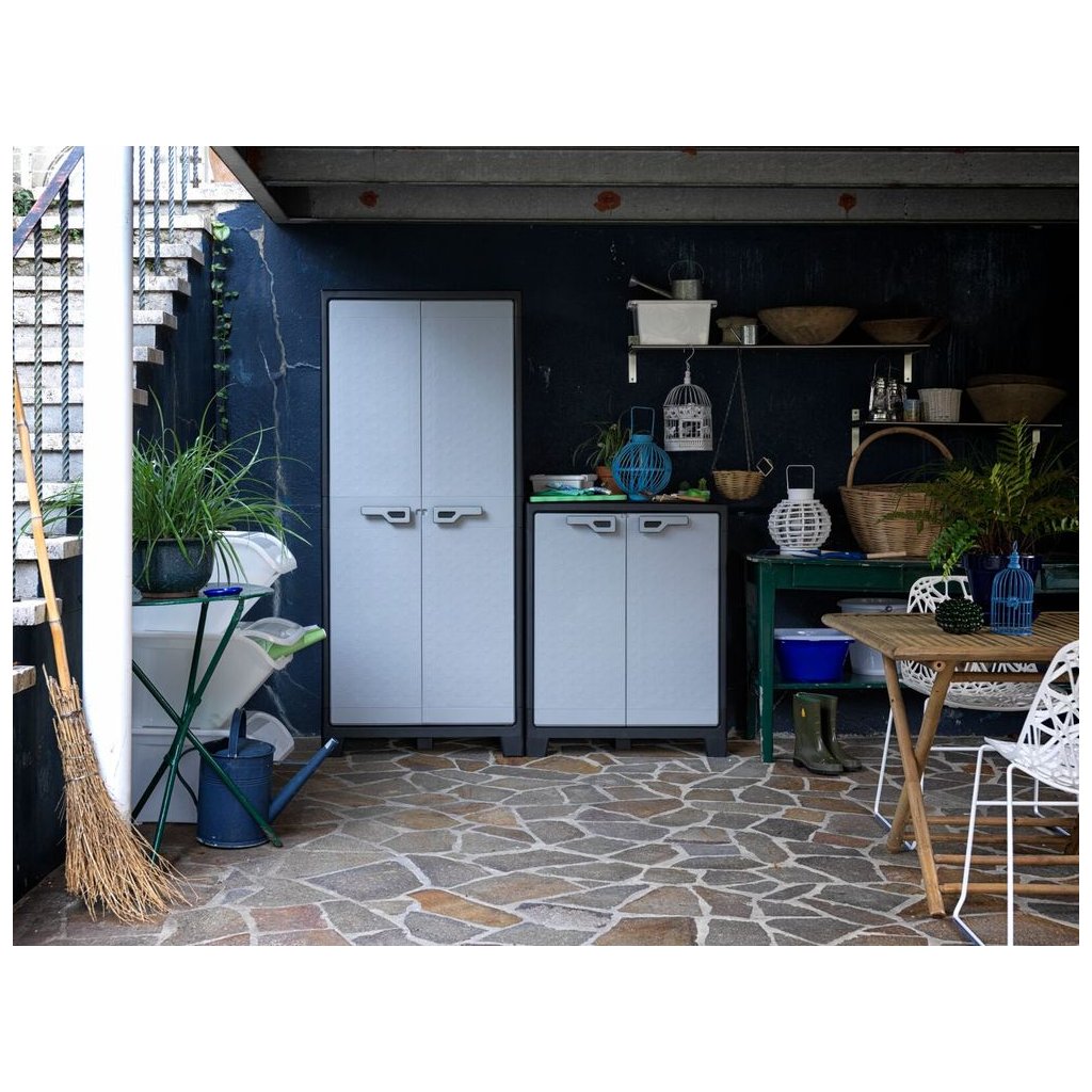 Luxus, ha minden kéznél van a kertben. A TITAN HIGH kültéri szekrénnyel elérhető közelségben lesz a kényelem, és nem kell hozzá kertes házat vagy pavilont építeni. A szekrény jó tulajdonságai mellett számtalan remek kütyü kerül bele - szilárd és tetszetős védelem a kerti szerszámoknak, tömlőknek, de takaróknak és minden másnak is, ami a kertben kell.