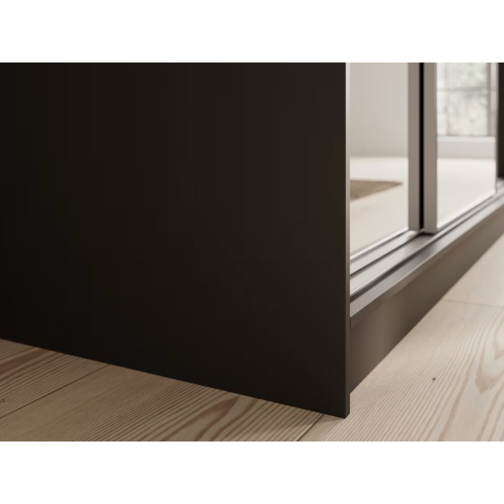 A fekete, TOLA tükrös gardróbszekrény a modern dizájnt ötvözi a magas fokú praktikummal. 200 cm szélességével bőséges tárolóhelyet kínál, amelyben szépen rendszerezheted a ruháidat, ágyneműdet és egyéb háztartási cikkeket. A tükrök optikailag megnövelik a szobát , és világosabb, szellősebb megjelenést kölcsönöznek neki. A tolóajtók helytakarékos megoldást kínálnak, így a gardróbszekrény ideális kisebb szobákba vagy keskeny folyosókra.