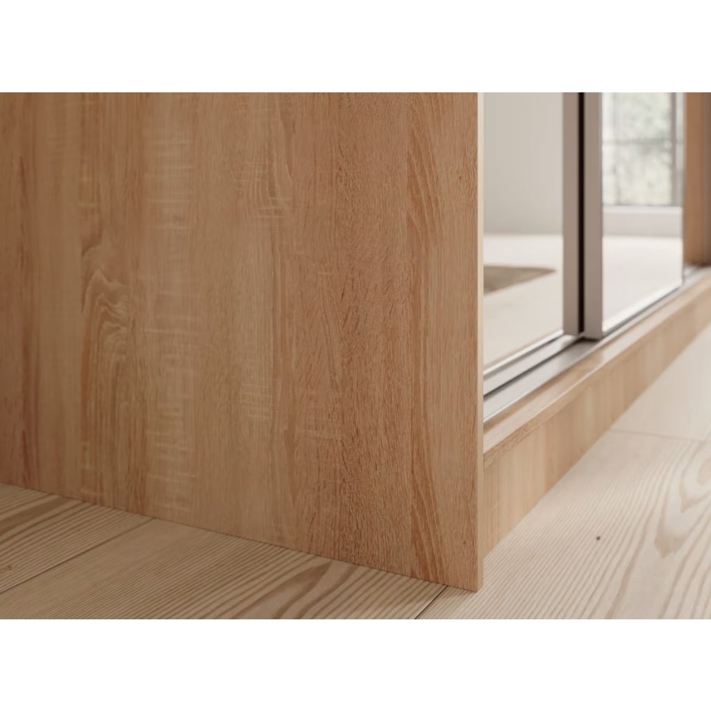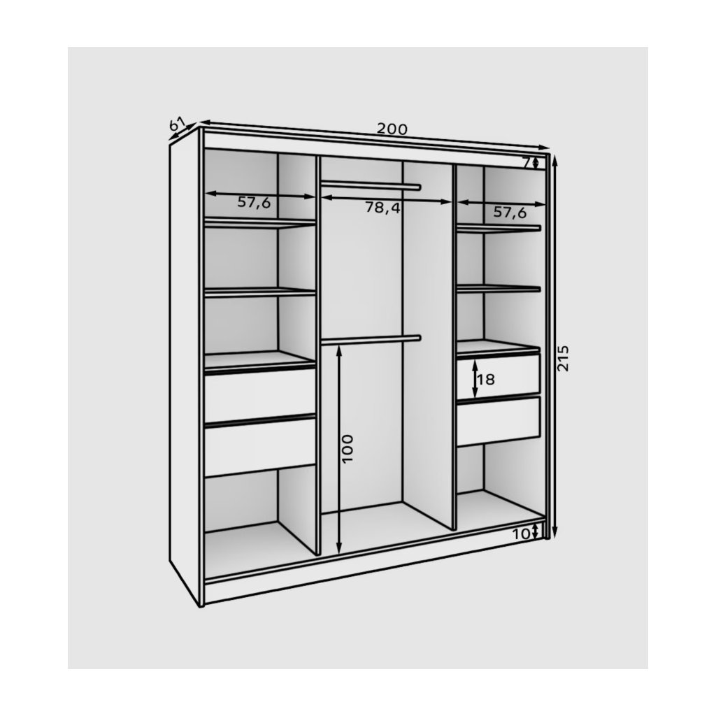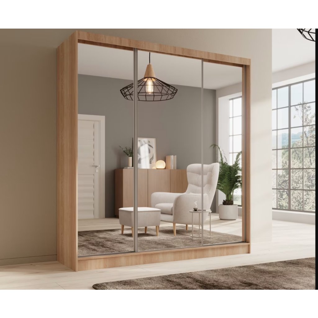 A TOLA tükrös gardrób Sonoma tölgy színben ötvözi a modern dizájnt a nagyfokú praktikummal. 200 cm szélességével bőséges tárolóhelyet kínál, amelyben szépen rendszerezheted a ruháidat, ágyneműdet és egyéb háztartási cikkeket. A tükrök optikailag megnövelik a szobát , és világosabb, szellősebb megjelenést kölcsönöznek neki. A tolóajtók helyet takarítanak meg, így a gardrób ideális kisebb szobákba vagy keskeny folyosókra.