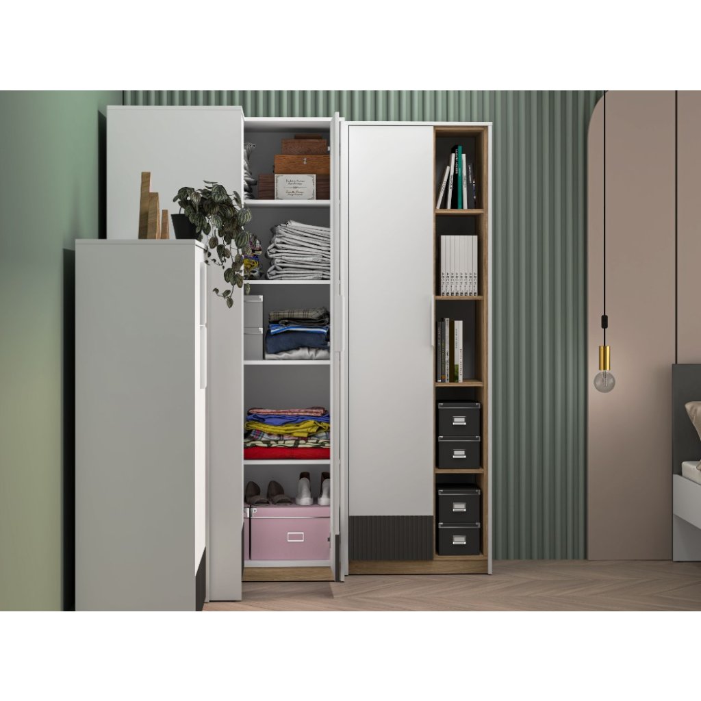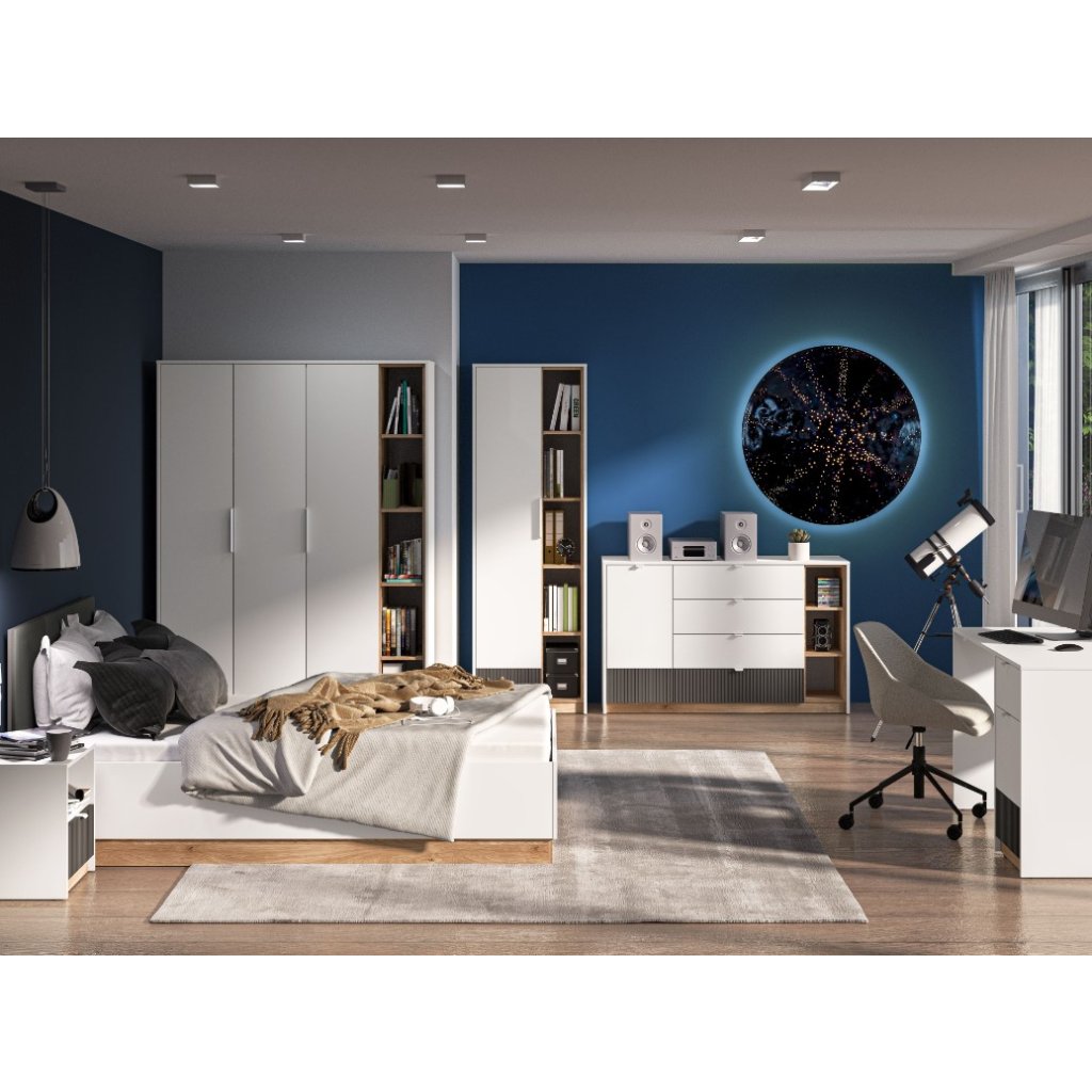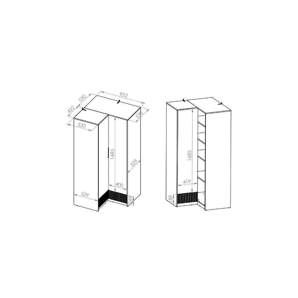 A fa, a fehér és a szürke színek stílusos összhatása pontosan az, amire szükséged van egy stílusos és praktikus diákszobához . A TORISMO 03 sarokgardrób tágas, akasztós rúddal és polcokkal, amelyek nagy tárolóhelyet biztosítanak. A kagylós részletek és a finom fogantyúk eleganciát és bájt kölcsönöznek. A gardrób súlya 93 kg. A gardrób szétszerelt állapotban kerül kiszállításra . Fektess be a minőségbe és a stílusba egy olyan sarokgardróbbal, amelyet az igényeidre terveztek.