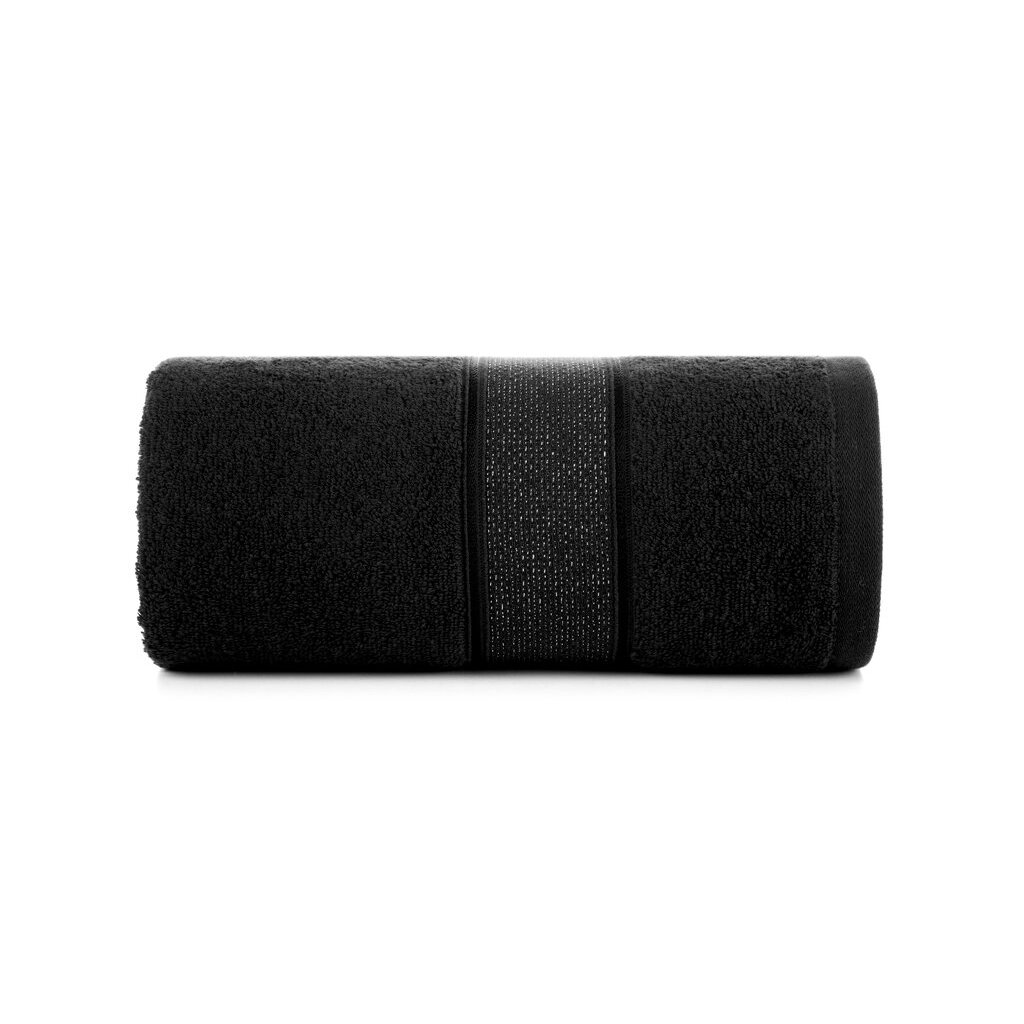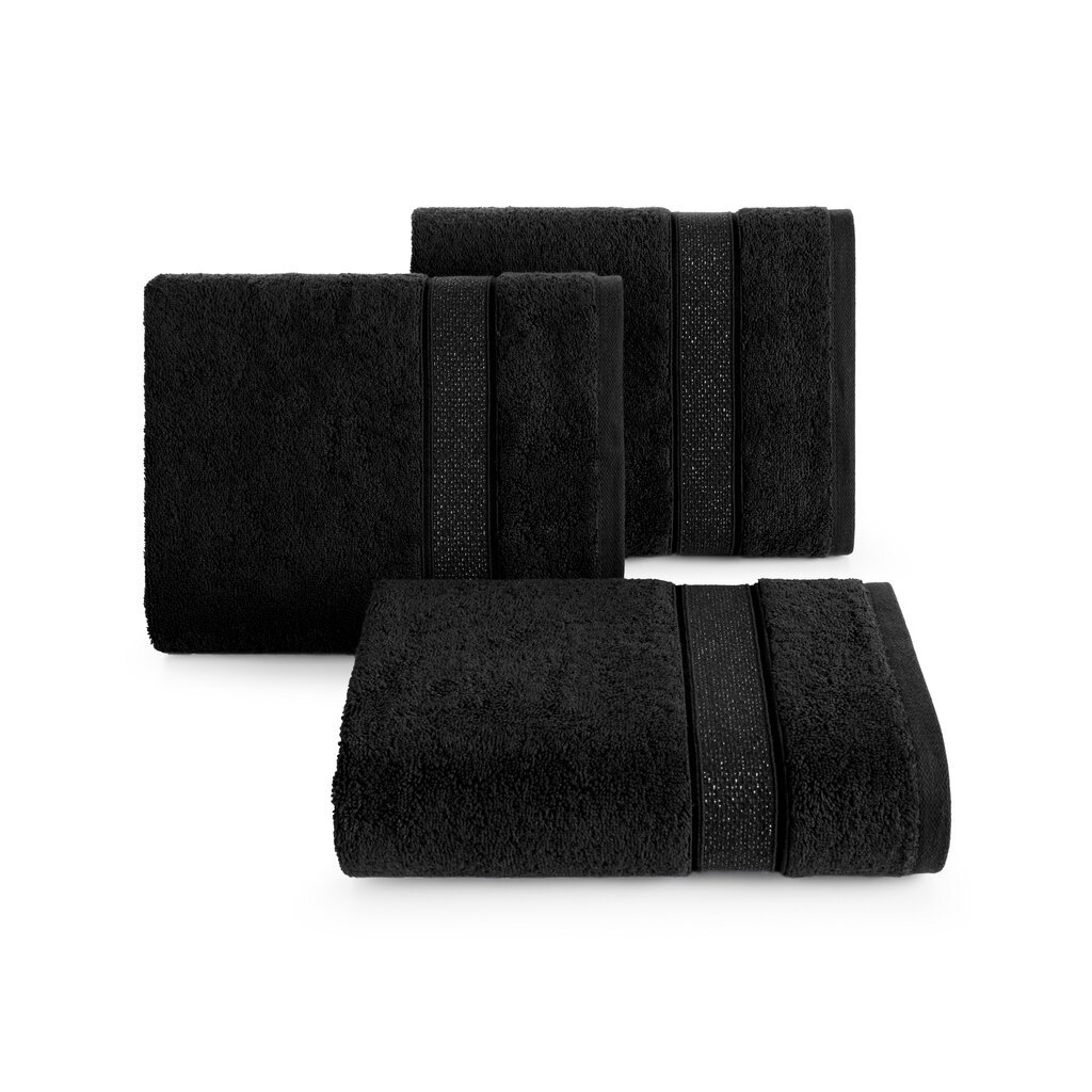 Fényes szálú pamut törölköző szélessége: 50 cm, hossza: 90 cm, színe: fekete, súlya: 500 GSM, összetétele: Anyaga: 100% pamut: dekoratív rész: Összetétel: 95% pamut, 5% poliészter