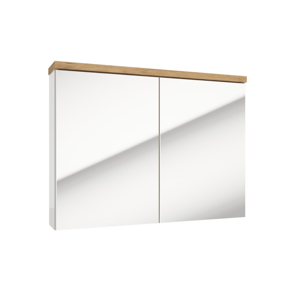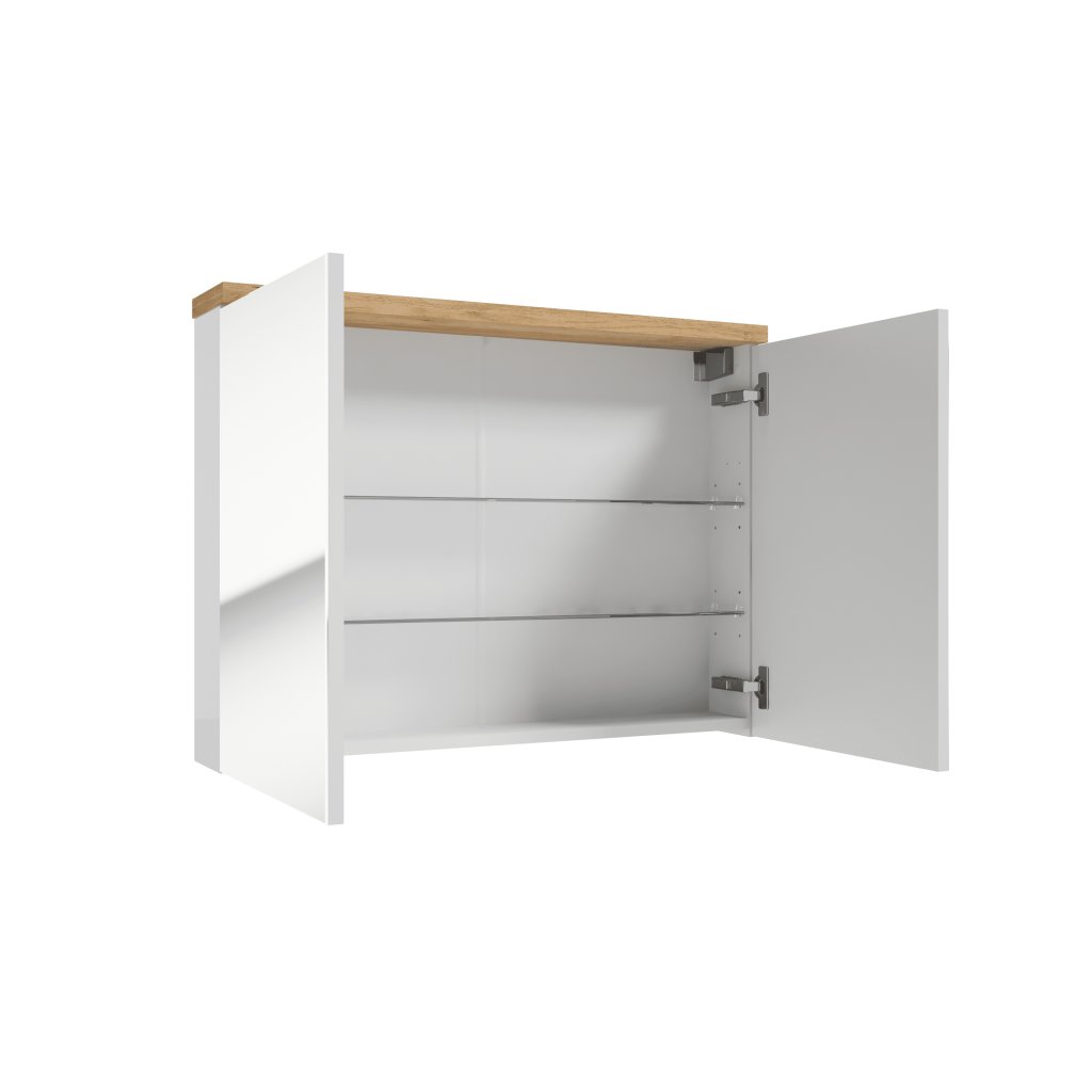Fürdőszobaszekrények fehér fényes és arany tölgy kombinációjában tiszta, fényes fehér felület meleg fa dekorációval , amely luxus és kellemes dizájnt teremt , amely modern és klasszikus enteriőrökbe egyaránt illik. Egészítse ki fürdőszobáját a SPACE E80 tükrös szekrénnyel , és praktikus megoldást kap kozmetikumok, törölközők vagy tisztítószerek tárolására . Két ajtó hangtalanul záródik. Ez a modern dizájn... ideális megoldás minden belső térbe .