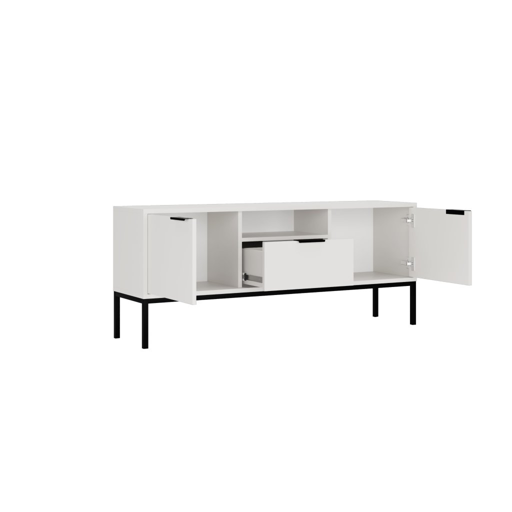 Vigyen új eleganciát otthonába az AUSTIN TV-állvánnyal, modern fekete-fehér dizájnjával . Ez a stílusos darab a letisztult minimalista dizájnt ötvözi a magas szintű funkcionalitással, így ideális kiegészítője lehet bármely otthonnak. A TV-állvány tágas fiókkal, nyitott polccal és két záródó rekesszel rendelkezik, amelyek rengeteg helyet biztosítanak ruhák, kiegészítők vagy egyéb szükséges dolgok számára. A fiókok klasszikus sínekkel vannak felszerelve, lágyan záródó rendszer nélkül.