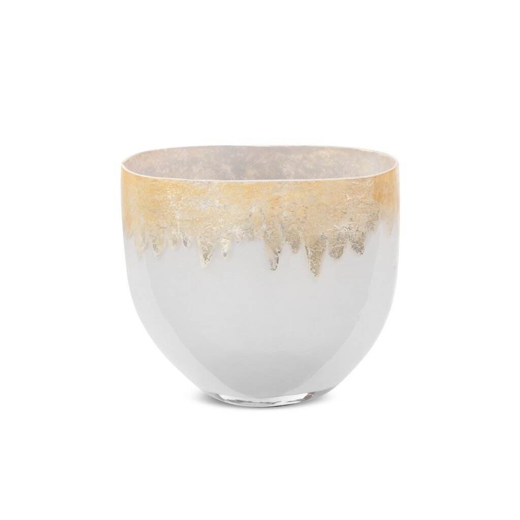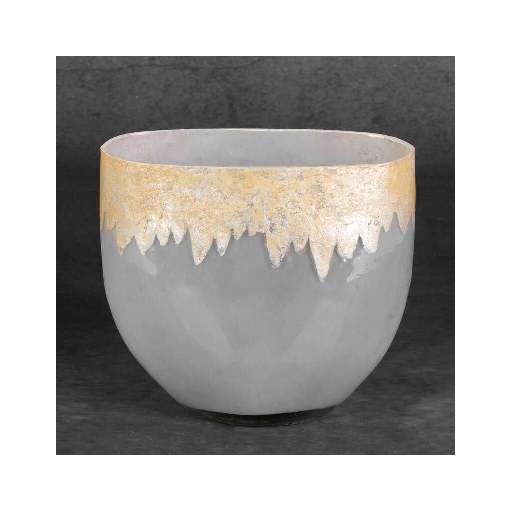 Díszváza szélesség: 21 cm, hossz: 11 cm, szín: arany, összetétel: Üveg ezüst tartály, szín: 100% üveg