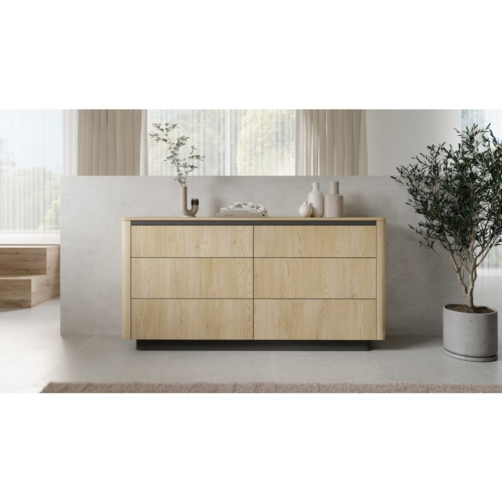 A VACCA kollekció egy kifinomult bútordarab, amely ötvözi a funkcionalitást és a stílusra jellemző formatisztaságot. A cremonai tölgy világos árnyalata kontrasztban áll a feltűnő fekete elemekkel , modern és vizuálisan feltűnő megjelenést teremtve , amely azonnal magára vonzza a tekintetet. A VACCA ideális választás mindazok számára, akik természetes megjelenésű bútorokat keresnek, ugyanakkor modern és eredeti belsőépítészeti elemre vágynak. A VACCA 163 6S fiókos szekrény tágas fiókokkal rendelkezik, fogantyú nélküli előlappal és finoman lekerekített oldalszettakkal, amelyek kiemelik a bútor könnyedségét és természetes eleganciáját .