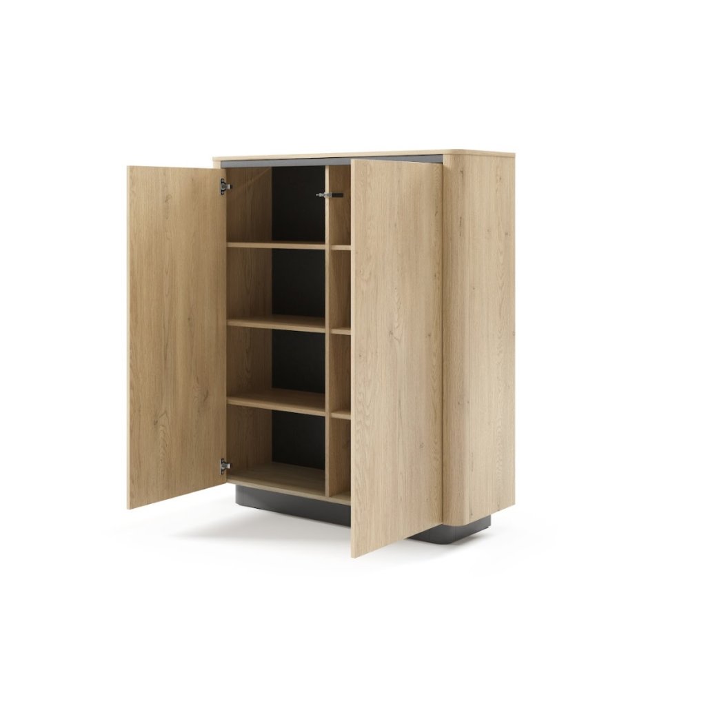 A VACCA kollekció egy kifinomult bútordarab, amely ötvözi a funkcionalitást és a stílusra jellemző formatisztaságot. A cremonai tölgy világos árnyalata kontrasztban áll a feltűnő fekete elemekkel , modern és vizuálisan feltűnő megjelenést teremtve , amely azonnal magára vonzza a tekintetet. A VACCA ideális választás mindazok számára, akik természetes megjelenésű bútorokat keresnek, ugyanakkor modern és eredeti lakberendezési elemre vágynak. A VACCA 2D fiókos szekrény egy kétajtós, Fogantyú nélküli előlapokkal és finoman lekerekített oldalszettakkal rendelkezik, amelyek hangsúlyozzák a bútorok könnyedségét és természetes eleganciáját .