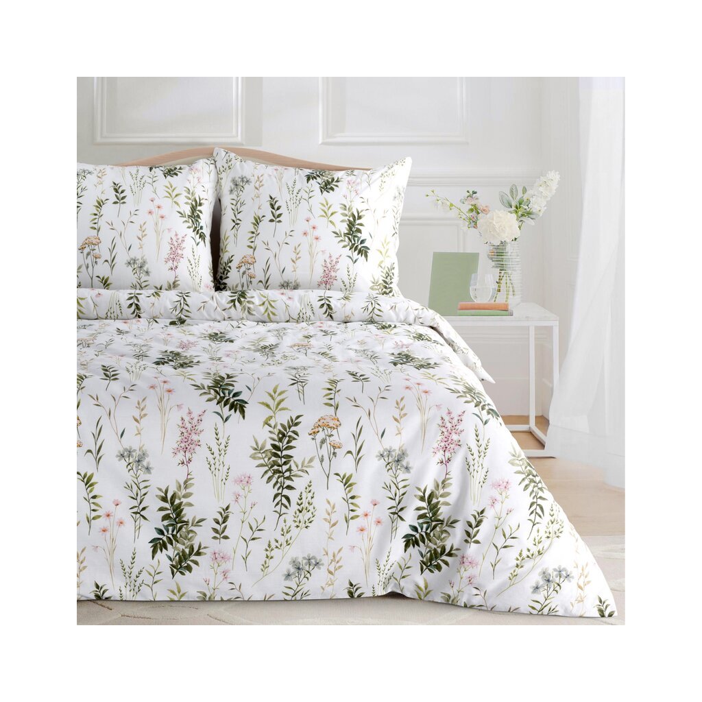 VANESS egyszemélyes ágynemű | fehér/zöld 140 x 200 cm
