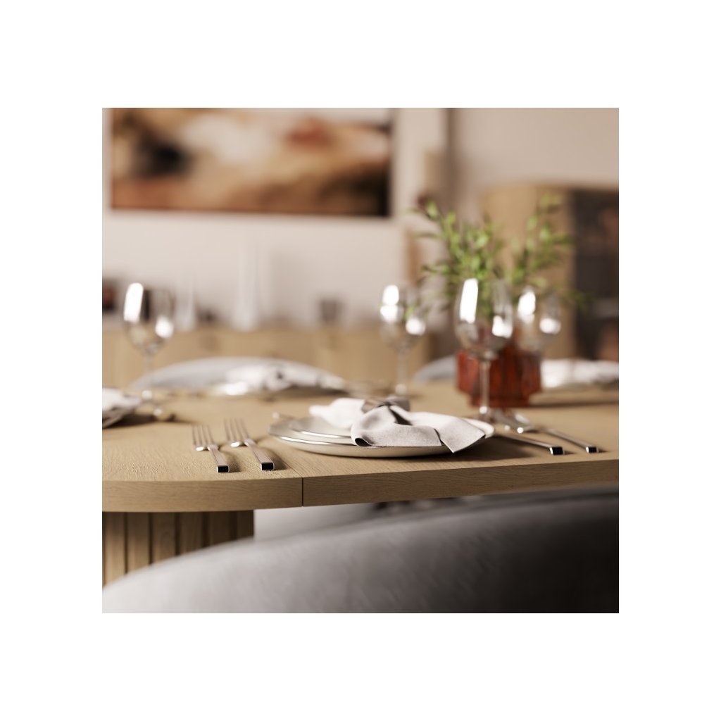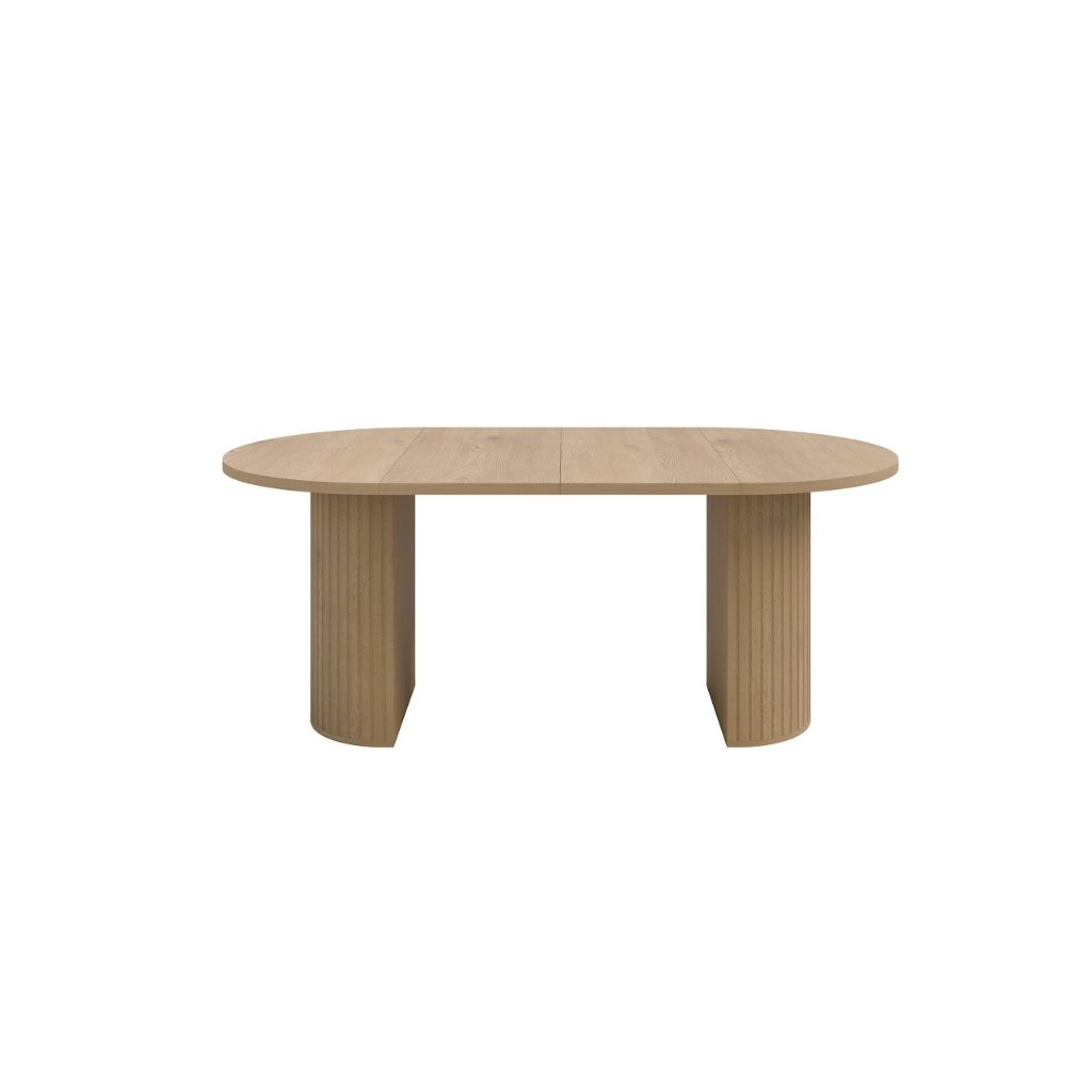 A VAOLIA kollekció minimalista stílust képvisel, melyet precízen megmunkált részletek és eredeti, lekerekített oldalak élénkítenek , új dimenziót adva az eleganciának a belső térbe. A színvilág visszafogott, földszínű árnyalatokban , például cremonai tölgyben pompázik, amelyek finoman megtörik az élénk tónusokat. A VAOLIA étkezőasztal kerek, kinyitva pedig ovális kialakítású. Az étkezőasztal akár 188 cm-ig is kihúzható.