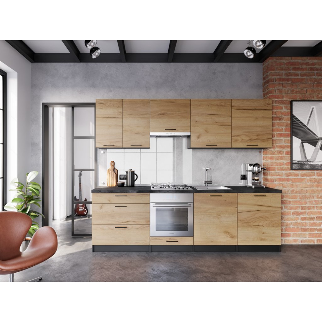 VELLA konyhabútor | 260 cm-es kézműves tölgy arany