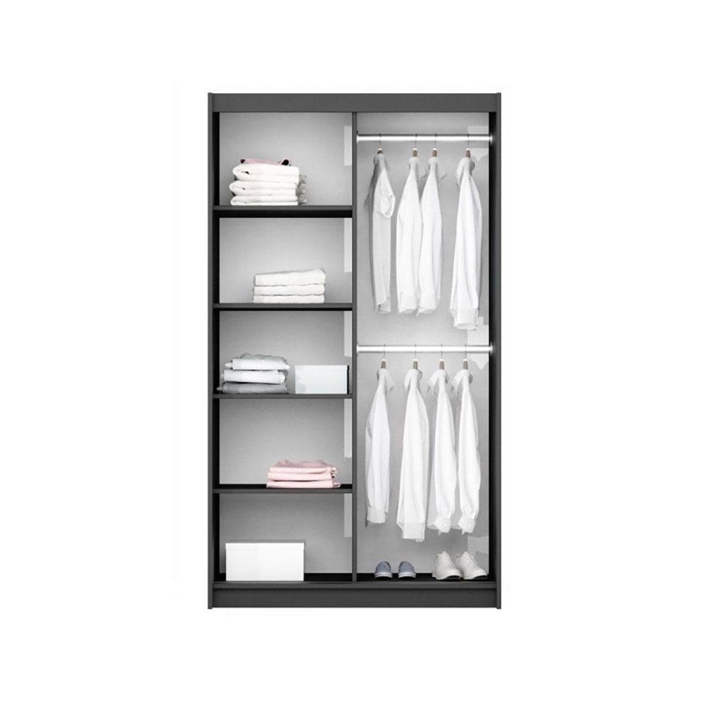 A modern VIGO 120 gardróbszekrény bármilyen belső térbe illik, és nem kell aggódnia a színkombinációk miatt. A gardróbszekrényt úgy tervezték, hogy a lehető legtöbb tárolóhelyet biztosítsa, így mindig minden szépen a helyén lehet. Megkülönböztető eleme a hatalmas tükör, amely világosítja a teret, és egyúttal optikailag is megnöveli azt.