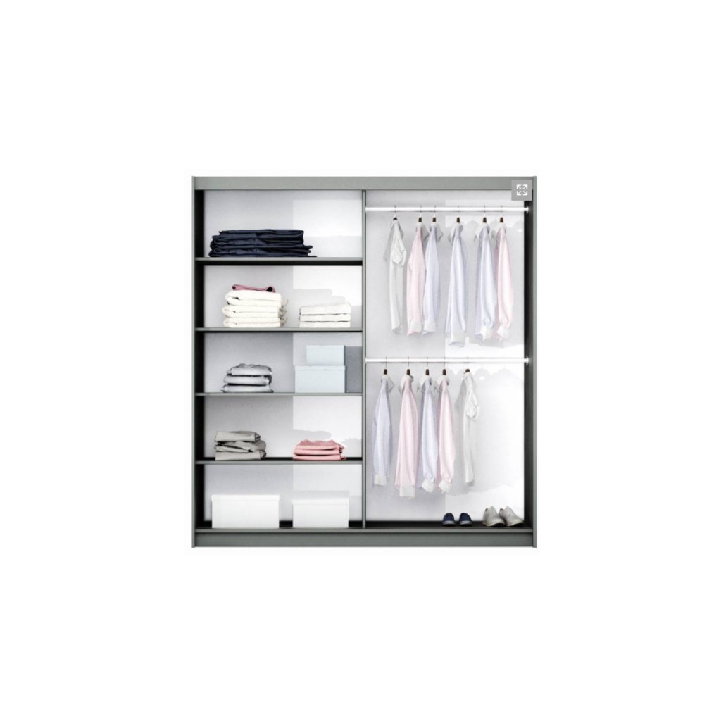 Ízléses ruhatár A VIGO 200 bármilyen enteriőrbe illik, és nem kell aggódnia a színkombinációk miatt. A szekrény semleges fekete matt színű. Gardrób úgy is tervezték, hogy a lehető legtöbbet nyújtsa tárolóhely , amely lehetővé teszi, hogy mindig minden szépen a helyén legyen. Feltűnő elem egy hatalmas tükör, amely világosítja a teret, és egyúttal optikailag is megnöveli azt.