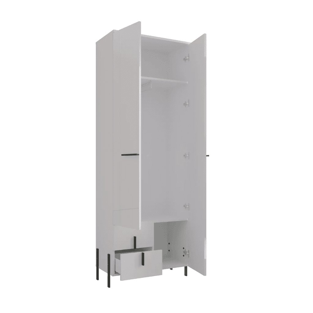 A modern VIGO ruhásszekrény kiváló minőségű LTD forgácslapból és MDF-ből készült. A fogantyúk műanyagból, a magas lábak fémből készültek.