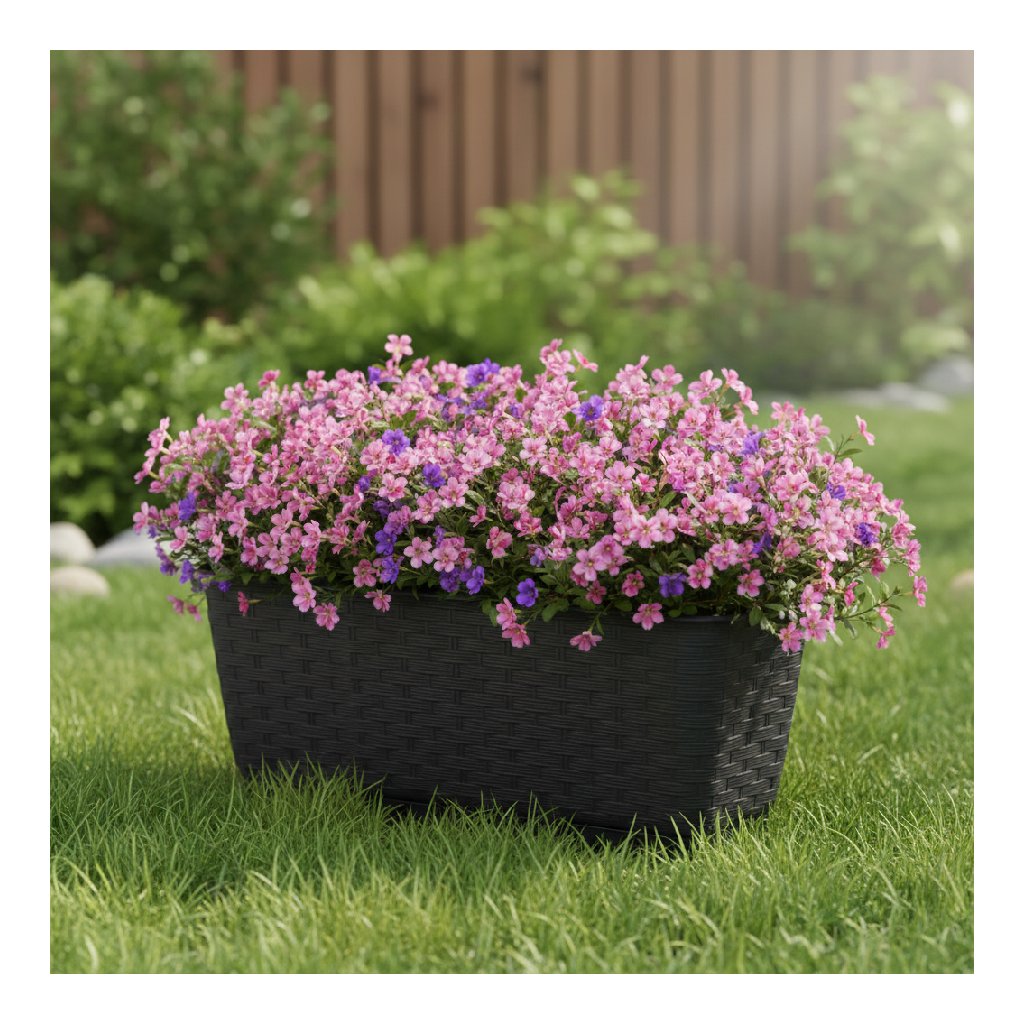 A RATOLLA CASE kerti ültetőgép kiváló minőségű és tartós, rattan szövést imitáló műanyagból készült. A virágcserép része a virágcserép kialakításába integrált vizestál , amely lehetővé teszi a növények egyszerű és hatékony öntözését. Ez az innovatív elem nemcsak nedvesen tartja a talajt, hanem minimálisra csökkenti a gyakori öntözés szükségességét is, ami megkönnyíti és hatékonyabbá teszi a virágok és növények gondozását.